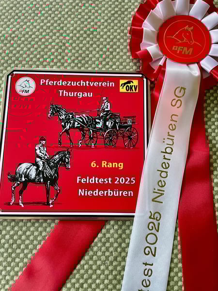 De driejarige Freiberger merrie Nova overtuigt door haar zenuwensterkte, haar vriendelijke uitstraling en haar betrouwbaarheid - eigenschappen die haar tot jouw ideale partner in de vrijetijd maken. Of het nu in het terrein is, onder het zadel of voor de wagen: Nova toont zich altijd kalm, coöperatief en bereid om te presteren. Tijdens de veldtest op 26.04.2025 in Niederbüren heeft ze zich uitstekend gepresenteerd en met een geweldige 6e plaats afgesloten. Met haar correct gebouwde exterieur behaalde ze de cijfers: 9/7/8. Nova valt op door haar sportieve gangen en haar veelzijdige aanleg. Ze is perfect geschikt voor recreatieve ruiters die waarde hechten aan een rustig, veilig en leergierig paard dat in het dagelijks leven net zo enthousiast is als in de training. We wensen voor Nova een liefdevol, deskundig thuis, waar ze gestimuleerd en gewaardeerd wordt. Alleen in de beste handen af te geven. Als je op zoek bent naar een trouwe ziel en een geweldige, sportieve vrijetijdspartner aan je zijde, dan is Nova de juiste Freiberger dame voor jou! Bezoek ons en leer Nova persoonlijk kennen! Kennismakingsafspraken zijn mogelijk na afspraak.