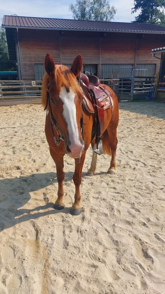 Kalisha ist eine freundliche, 9-jährige Freibergerstute mit Westerngrundausbildung. Sie wurde bisher im Reitschulbetrieb für fortgeschrittene Reiter eingesetzt. Aufgrund einer Umstrukturierung suchen wir nun ein passendes Zuhause für sie. Kalisha kennt Bodenarbeit, Longieren, Ausritte sowie die Arbeit auf dem Platz. Sie zeigt keine Unarten wie Steigen oder Bocken. Allerdings fordert sie einen konsequenten, klaren Reiter, der ihr Sicherheit gibt. Mit klarer Führung ist sie ein zuverlässiges und motiviertes Pferd. Wir sehen sie als ideales Freizeitpferd für den ambitionierten Freizeitreiter. 📩 Bitte nur ernstgemeinte Anfragen.