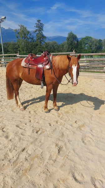 Kalisha is a friendly 9-year-old Freiberger mare with a Western basic training. She has been used in a riding school for advanced riders. Due to a restructuring, we are now looking for a suitable home for her. Kalisha is familiar with groundwork, lungeing, trail rides, and work in the arena. She shows no vices such as rearing or bucking. However, she requires a consistent, clear rider who provides her with security. With clear guidance, she is a reliable and motivated horse. We see her as an ideal leisure horse for the ambitious recreational rider. 📩 Serious inquiries only, please.
