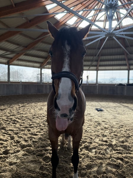 Schweren Herzens muss ich mich aus zeitlichen und finanziellen Gründen von meinem Pferd DJ trennen. Er ist ein tolles Pferd mit viel Charakter und hat es verdient, einen Menschen zu finden, der ihm die Aufmerksamkeit schenken kann, die er braucht. Zu DJ: • Traber Wallach • wird am 01.05. 13 Jahre alt • ca. 167 cm Stockmaß • seit ca. 3 Jahren als Freizeitpferd geritten DJ ist aktiv Rennen gelaufen, und daher nichts für Kinder die auf ihm Reiten lernen möchten, oder noch nicht so richtig wissen was sie auf seinem Rücken tun. DJ ist ein motiviertes Pferd, das immer versucht seinem Menschen zu gefallen. Er arbeitet gerne mit und möchte regelmäßig beschäftigt werden. Aktuell hat er einmal pro Woche frei, ansonsten wird er gearbeitet. Aufgrund seiner Rennkarriere bringt er viel Go mit und ist daher kein Anfängerpferd. Er sucht einen liebevollen, aber konsequenten Reiter, der Freude daran hat, mit ihm zu arbeiten. Ich habe ihm erfolgreich beibringen können, wieder zu galoppieren unterm Reiter. Eigenschaften: • brav beim Verladen • brav beim Schmied • verträglich mit Wallachen und Stuten, in der Herde sehr unkompliziert • hat Spaß am Springen, wurde jedoch nicht weiter gefördert • Shettys findet er besonders sympathisch • aktuell 4-fach beschlagen Ausreiten: Alleine sowie in der Gruppe möglich. Durch den Winter waren wir länger nicht mehr regelmäßig im Gelände unterwegs, daher ist er aktuell wieder etwas aufmerksam und „guckig“. Er wird dabei jedoch nicht kopflos, sondern schaut nur – mit etwas Routine und Übung legt sich das schnell wieder. Haltung: Aktuell steht DJ in Boxenhaltung mit täglichem Auslauf (ca. 6:45 Uhr raus – 18 Uhr wieder rein). Er benötigt ausreichend gutes Heu, da er sonst schnell abnimmt (aktuell 24h Heu). Im Winter wird er eingedeckt. Mir ist sehr wichtig, dass DJ in ein dauerhaftes und liebevolles Zuhause kommt, in dem er gefördert und wertgeschätzt wird. Platz vor Preis. Händler und Schulbetriebe bitte nicht anfragen. Bei ernsthaftem Interesse freue ich mich über eine Nachricht auch gern unter 0173-6403397 und ein persönliches Kennenlernen.