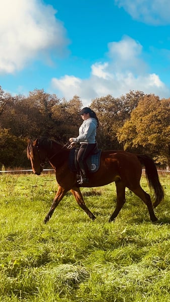 ✨ Available ✨ ❣️ KYREV • Breed: French Trotter • Age: 5 years • Height: approximately 16.0 hh Kyrev is a young horse with a heart of gold, honest and willing. Very respectful of humans, friendly and easy to handle both on foot and mounted. He has never raced. ✨ Training: • Galloping • Starting to jump a few poles without any issues • Dressage (leg-yield, shoulder-in, etc.) • Hacks alone or in a group outdoors • Good with dogs, tractors, cars, etc. He travels very well, both in a trailer and a truck. Lives out in the pasture. ➡️ Perfect for a rider with beginner to intermediate experience. 📍 Located in Vendée, 85