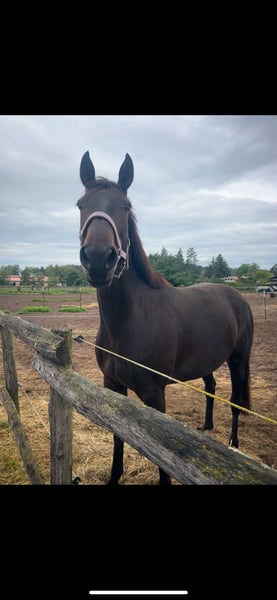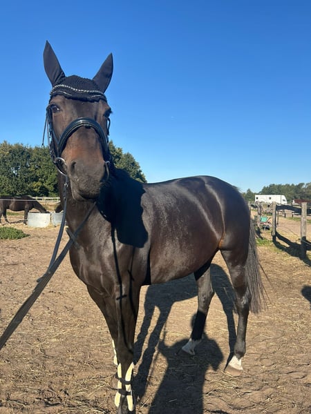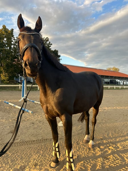 Hello everyone, We are selling our trotting mare Goldi. She is 9 years old. She has a wonderful personality, and once she trusts you, she would go through fire for you. She is affectionate and well-behaved in handling, and she is open to all kinds of activities—groundwork, hacking, small cavaletti exercises, or simply riding in the indoor arena or riding arena. She has been ridden since she was five years old, and her canter has improved significantly over the years, to the point where you wouldn't even think she is a trotter. In August 2025, she underwent surgery on her hock, which she handled very well. Currently, she is in a building-up training phase (trotting and cantering). She also has a history of laminitis, but it has not recurred in the past three years, and she has been back on pasture. If you are looking for a versatile horse with whom you can do everything and have fun, Goldi is the perfect choice. X-ray images are available. Please contact us with any questions or if you're interested.