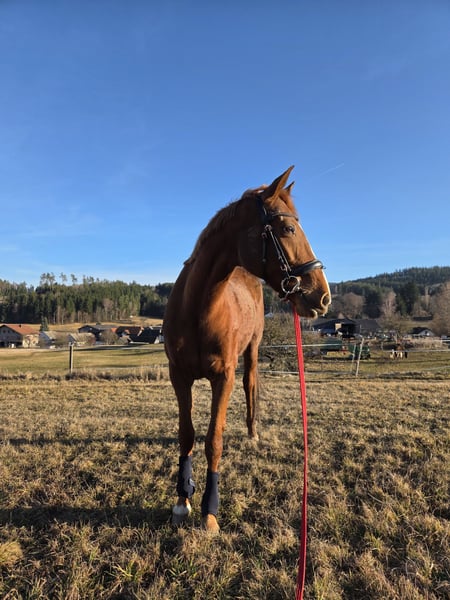 For sale is an 8-year-old trotting mare with an approximate height of 16.0 hh. I acquired her directly from the racetrack two years ago. Since then, she has had time to settle in peacefully and simply be a horse. She has been: • lunged • gently and gradually introduced to riding She is already accustomed to rider weight from her time on the racetrack. Currently, she is not in training and is therefore somewhat under-muscled, but she has a solid foundation and is ideal for further development. In handling, she consistently proves to be uncomplicated: ✔️ well-behaved at the blacksmith ✔️ easy to load ✔️ clear-minded ✔️ healthy An honest, straightforward mare suitable for leisure riders or anyone who enjoys furthering their horse’s education themselves.