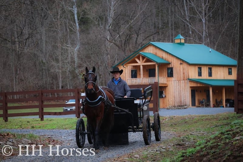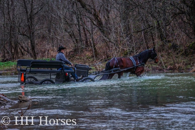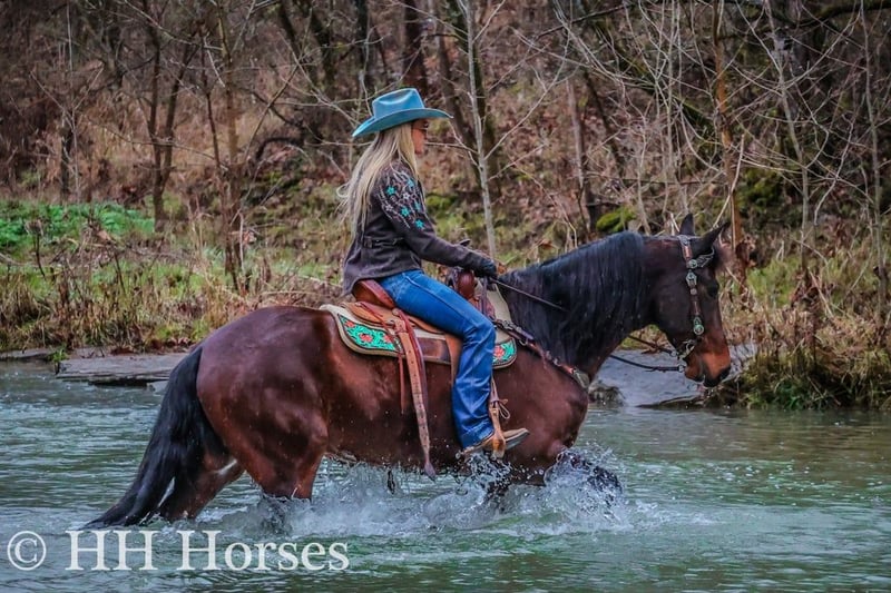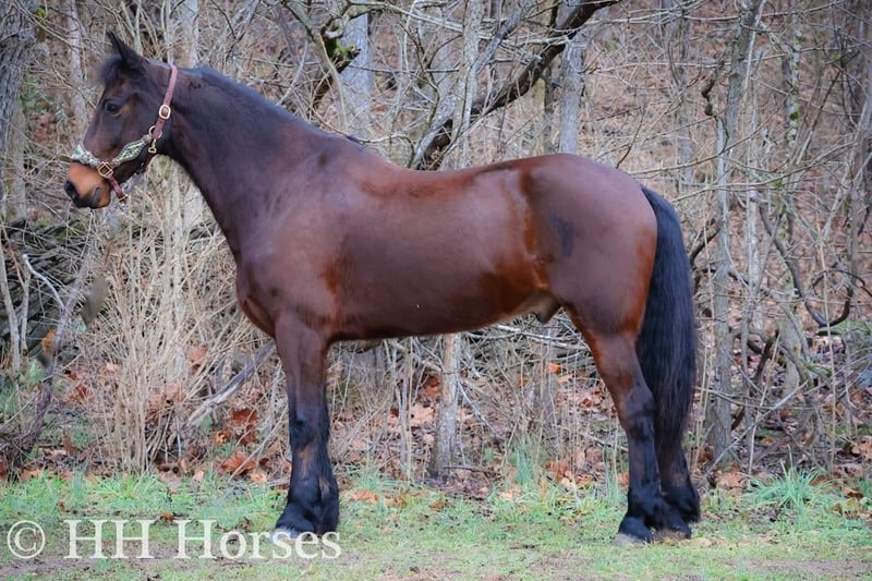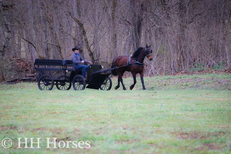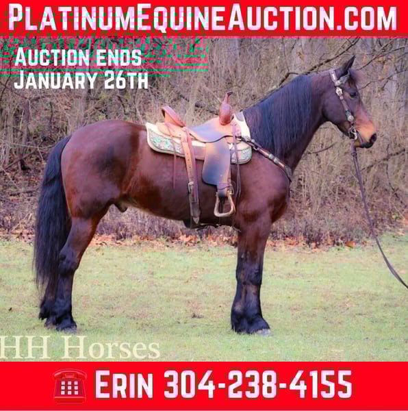 ONLINE AUCTION Place your bids at www.PlatinumEquineAuction.com Starting Bid $3500 Auction ends January 26th, 2025 Need a new saddle? Check out White Rock Saddles on our website or Facebook! Meet “Mr. KATMANDU”, a real gentle, real broke, fun, fancy, and quiet BAY FRIESIAN MORGAN CROSSBRED GELDING. He is broke to ride and drive and will also hook up and work to farm machinery. He is 15.3 hands tall and 9 years old. He has been through our cross country driving course and will cross the rushing water with a buggy or wagon fine. He will also trail ride anywhere you want to go, he is sure footed, honest, brave, and will ride out alone or in a group. He is fun to ride and stops hard, backs up, turns easily, and moves off of leg cues. He is just a real fun Friesian gelding that isn’t too fast and isn’t too slow. He is traffic safe, not spooky, and has no tricks and no surprises. He will lope off with no buck and no hump. He has a nice jog, a good walk, and a steady canter. He likes attention, has excellent ground manners, and he aims to please. He has been driven to town and in the pastures to check cattle. He’s versatile, pretty, smart, and sane. Contact HH Horses Erin 304-238-4155 for more info or to make a Buy It Now Offer. Located in Flemingsburg, KY.