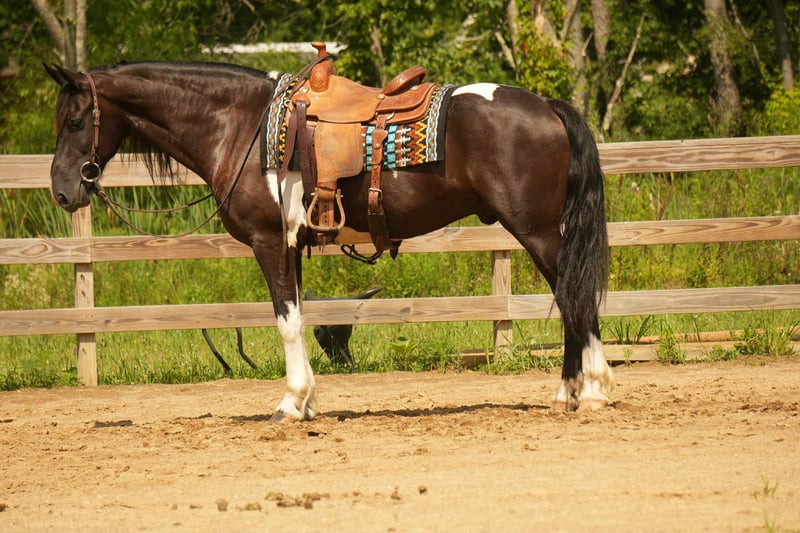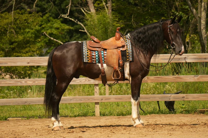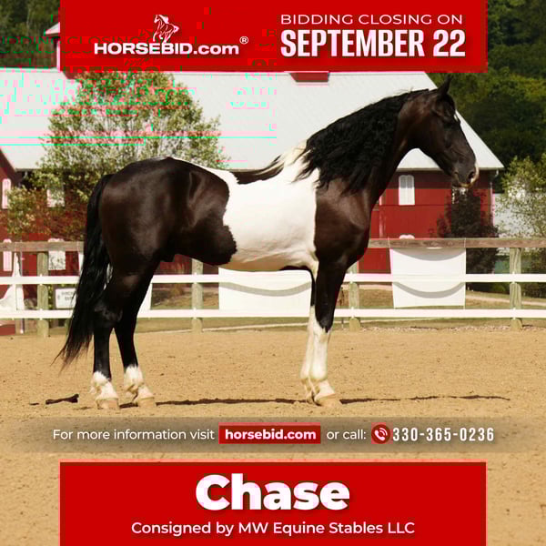 🍁𝒕𝒉𝒆 𝐅𝐀𝐋𝐋 𝑺𝒑𝒆𝒄𝒕𝒂𝒄𝒖𝒍𝒂𝒓🍁 Happening now thru MONDAY | SEPTEMBER 22nd - Available EXCLUSIVELY on HorseBid's website! For more details and to register visit: www.Horsebid.com CONSIGNOR CONTACT: MW Equine Stables LLC 330-365-0236 LOCATION: Fresno, OH BREED: Friesian Cross REGISTERED: No COLOR: Black & White HEIGHT: 15.3 AGE: 10 GENDER: Gelding Chase is an absolutely stunning paint Friesian cross gelding. He is 10 years old, and stands 15.3 hands tall. Chase is trained to ride and drive. He has been driven single as well as in a team. If you are looking for the looks and presents of a fancy paint with the friesan Stamp, look no further. He has had lots of miles on the trails, and does great. He will walk trot and canter. And always takes the correct lead. Chase will cross all kinds of obstacles. We have hauled him to public parks. He will cross the logs, creeks, bridges, all kinds of obstacles you might encounter. Chase rides English and Western, we believe he would be a great dressage prospect, He is a nice big mover and more on the Sporty side. Chase has that 🤩Wow presence !! He would be well suited for an intermediate rider.. No buck or bolt… Located in Fresno Ohio - Contact Marcus@ 330-365-0233