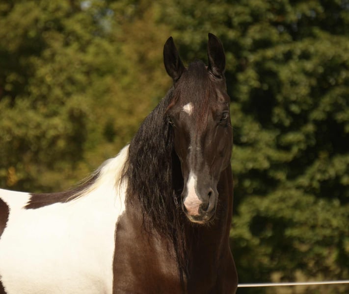 🍁𝒅𝒆𝒓 𝐅𝐀𝐋𝐋 𝑺𝒑𝒆𝒌𝒕𝒂𝒌𝒖𝒍𝒂𝒓🍁 Jetzt bis MONTAG, den 22. SEPTEMBER - EXKLUSIV auf der Website von HorseBid verfügbar! Für weitere Details und zur Registrierung besuchen Sie: www.Horsebid.com KONTAKT DES VERKÄUFERS: MW Equine Stables LLC 330-365-0236 STANDORT: Fresno, OH RASSE: Friesisch-Mix EINGETRAGEN: Nein FARBE: Schwarz & Weiß GRÖSSE: 15.3 Hände ALTER: 10 Jahre GESCHLECHT: Wallach Chase ist ein absolut atemberaubender Paint-Friesisch-Mix-Wallach. Er ist 10 Jahre alt und hat eine Größe von 15.3 Händen. Chase ist zum Reiten und Fahren ausgebildet. Er wurde sowohl im Einzel- als auch im Gespann gefahren. Wenn Sie nach dem Aussehen und der Präsenz eines schicke Paint mit dem friesischen Stempel suchen, sind Sie hier genau richtig. Er hat viele Kilometer auf den Trails zurückgelegt und macht das großartig. Er wird im Schritt, Trab und Galopp geritten und nimmt immer das richtige Bein. Chase wird alle Arten von Hindernissen überwinden. Wir haben ihn zu öffentlichen Parks transportiert. Er wird über Baumstämme, Bäche, Brücken und alle Arten von Hindernissen, die Sie antreffen könnten, gehen. Chase wird sowohl im englischen als auch im western Stil geritten, wir glauben, dass er ein großartiger Dressurpferd-Anwärter wäre. Er hat eine schöne große Bewegung und ist eher sportlich. Chase hat diese 🤩Wow-Präsenz!! Er wäre gut für einen reiterfahrenen Reiter geeignet. Kein Buckeln oder Durchgehen… Standort in Fresno, Ohio - Kontaktieren Sie Marcus unter 330-365-0233