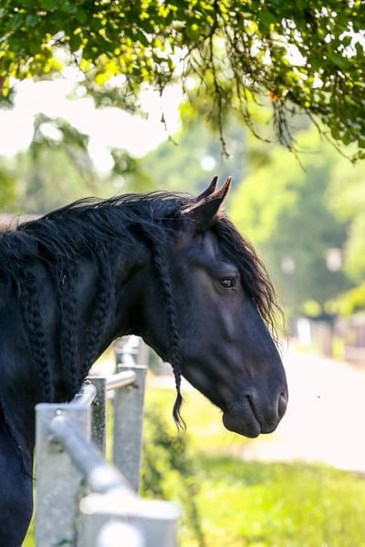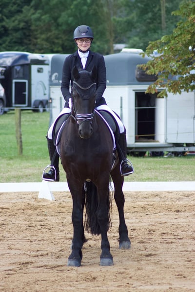 Schweren Herzens verkaufe ich meinen selbst ausgebildeten Friesenwallach Odin, da ich noch zwei weitere Pferde besitze und ihm zeitlich nicht mehr gerecht werden kann. Odin ist ein außergewöhnlich tolles Pferd, das die volle Aufmerksamkeit verdient. Ich habe Odin 2,5 jährig vom Friesengestüt Hof Steendans gekauft, wo wir bis heute beheimatet sind. 3-jährig habe ich ihn schonend eingeritten und 4 jährig lief er die ersten drei Turniere. Mittlerweile kann er zahlreiche Platzierungen bis zur Klasse S nachweisen. Wir waren dreimal auf den deutschen Amateurmeisterschaften in Münster Handorf vertreten. Er erhielt vom niederländischen KFPS die Auszeichnung „Elite Sport“. Doch nicht nur in der Dressur überzeugt Odin auf ganzer Linie. Er zeigt viel Talent am Sprung mit guter Manier, arbeitet zuverlässig an der Doppellonge und liebt es im Gelände die Seele baumeln zu lassen oder auch mal Gas zu geben. Odin ist brav im Umgang, selbstverständlich schmiede- und verladefromm und war bislang nie krank oder verletzt. Die Kastration erfolgte im Alter von fünf Jahren, zugunsten einer artgerechten Herdenhaltung. Seitdem steht er problemlos mit Wallachen und Stuten in der Herde. Er kennt Boxenhaltung mit täglichem Weide- oder Paddockgang, stand jedoch nie im Offenstall. Ein Pferd mit großem Herz, toller Rittigkeit, Leistungsbereitschaft und bestem Charakter - ideal für ambitionierte Reiterinnen oder Reiter mit Spaß am Sport und Freizeit gleichermaßen. Bei ernsthaftem Interesse und für weitere Informationen freue ich mich über ihre Nachricht.