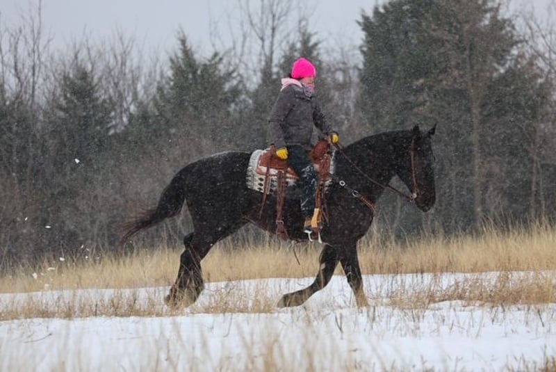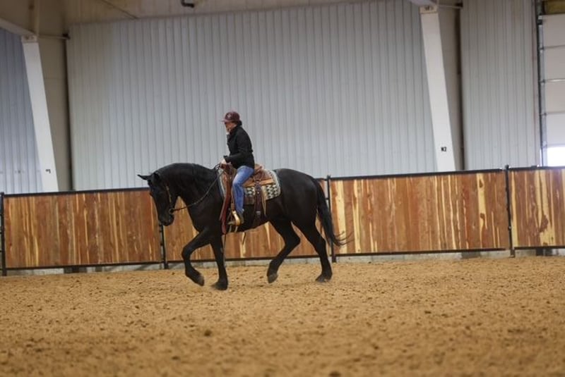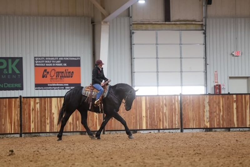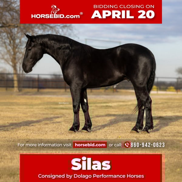 ⚜️𝐭𝐡𝐞 𝓔𝓵𝓲𝓽𝓮 𝐒𝐩𝐫𝐢𝐧𝐠 𝐂𝐥𝐚𝐬𝐬𝐢𝐜⚜️ Happening now thru MONDAY | APRIL 20th - Available EXCLUSIVELY on HorseBid's website! For more details and to register visit: www.Horsebid.com CONSIGNOR CONTACT: Dolago Performance Horses 8609420623 LOCATION: Ripley, OK BREED: Friesian/ Percheron REGISTERED: No REGISTERED NAME: Silas COLOR: Black HEIGHT: 16.2 AGE: 4 GENDER: Gelding Silas is truly something special, and anyone who spends time with him will quickly see why! I’m so happy to offer Silas a 4 year old jet black crossbred gelding standing at 16.2 hands and weighs approximately 1300 pounds with the bone, presence, and build to turn heads wherever he goes. He is packed with love and a heart of gold. Don’t let his size scare you with a smooch and a click of a finger he’ll side pass to anything for you to get on… whether it’s a fence, tailgate, water trough, or anything you use! Silas is a horse that not only catches your eye but makes your jaw drop to the floor. He’s one of thoose horses that you could stare at for hours and not get bored. With his deep black coat, matching mane and tail, soft eye, and standout confirmation.. big hip, strong neck, clean legs, and a solid top line. Silas is built to impress. He’s an easy keeper, stays in great shape with minimal effort. He’s not only stunning but he truly has a heart of gold. He is the definition of a puppy dog all he ever wants is loving and pats. He is always wondering what you’re doing and wants to be in your pocket. If he could he would want to do everything with you! Don’t think you’re going to clean his stall without him practically begging for attention. He also LOVES treats and snacks! Now he’s not only just looks and personality he is very fun to ride anywhere! He is very willing to learn and easy to teach anything to! He is one hand broke with a turn around and stop. I have taken many reining lessons with him, rode him english not only in an arena but through town and trail rides, he has been roped off of, used for day work, used on the feed lot, carried the American flag at lots of rodeos, been in many parades, and trail rode more times than I can keep track of! Did I mention he dosnt bat an eye at fire. He is my go to ride for anything! I always say if I were to ride a horse through battle it would be him! You can saddle him english or western and take him anywhere or do anything without a bat of an eye! I sure have had a blast owning him and getting to work with him it’s now somebody else’s turn to enjoy this phenomenal horse!