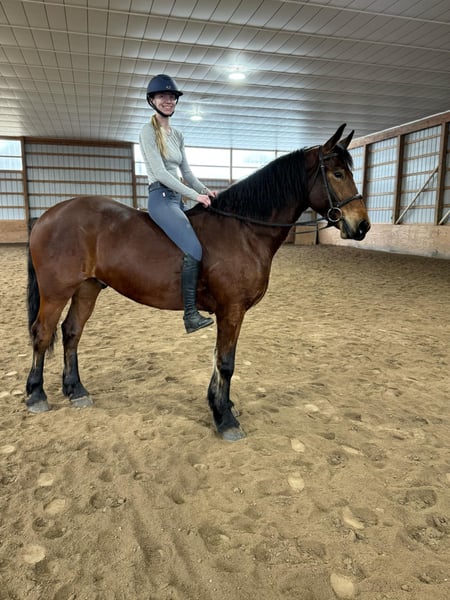 ONLINE-AUKTION Geben Sie Ihre Gebote ab unter www.PlatinumEquineAuction.com Startgebot 3500 $ Auktion endet am 20. April 2025 Brauchen Sie einen neuen Sattel? Schauen Sie sich White Rock Saddles auf unserer Website oder Facebook an! Suchen Sie Ihr nächstes Sportpferd für Vielseitigkeit, Dressur, Equitation, Fuchsjagd, 3-Ring und vieles mehr... die Möglichkeiten sind endlos mit diesem hier. Cruise ist ein 3-jähriger Wallach, misst 16hh und hat eine unglaubliche Substanz und Knochenstärke – uns wurde gesagt, dass er ein Friesen x Morgan Mix ist, aber er hat keine Papiere, daher nenne ich ihn für diese Anzeige einen Mischling. Dieser Wallach ist RUHIG und vernünftig weit über sein Alter hinaus, praktisch unerschütterlich. Cruise hat einen unglaublichen Start in seine Karriere, er reitet Schritt, Trab und Galopp, nimmt beide Galoppleads und hat sehr einfache Übergänge nach unten und ein großartiges Whoa! Cruise lernt, sich schön in die Anlehnung zu versammeln und bewegt sich weich in Ihren Händen, weicht in beide Richtungen und dreht sich auf der Hinterhand, er geht rückwärts. Er wurde viel im Gelände geritten und ist allein oder in der Gruppe sehr ruhig und angenehm, durch Felder und auf Wegen. Er fährt auch mit Leichtigkeit einspännig! Cruise steht ruhig angebunden, ist geduldig beim Putzen und Baden und gut für den Tierarzt und Hufschmied. Er lädt sich in jeden Anhängertyp und fährt ruhig, er entlädt sich an neuen Orten ohne Probleme und benötigt keine Bodenarbeit oder Vorbereitung, einfach satteln und losreiten. Cruise ist gesund ohne vorherige medizinische Vorgeschichte oder Verletzungen – alle potenziellen Käufer sind eingeladen, auf eigene Kosten eine tierärztliche Untersuchung vor dem Kauf durchführen zu lassen. Wenn Sie Hilfe bei der Organisation des Transports benötigen, zögern Sie nicht zu fragen, wir teilen Ihnen gerne unsere Liste der Transportdienste mit. Standort: Everett, PA. Kontaktieren Sie Benny Hall unter 814-979-2046 bei Fragen. ONLINE-AUKTION Geben Sie Ihre Gebote ab unter www.PlatinumEquineAuction.com Startgebot 3500 $ Auktion endet am 20. April 2025 Brauchen Sie einen neuen Sattel? Schauen Sie sich White Rock Saddles auf unserer Website oder Facebook an!