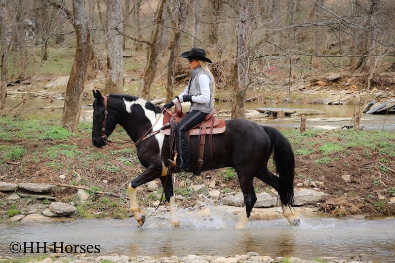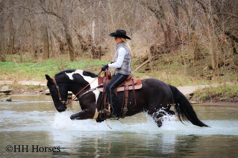 ONLINE AUCTION Place your bids at www.PlatinumEquineAuction.com Starting Bid $3500 Auction ends March 23rd, 2025 Need a new saddle? Check out White Rock Saddles on our website or Facebook! This is “PVF ROCKET”, a stunning BLACK AND WHITE REGISTERED FRIESIAN SPORT HORSE GELDING broke to ride and drive. This gelding is a handsome 15.2 hands tall. He is 4 years old and has had professional training. This nice gelding will lope circles, catch his leads, neck rein, and stop on whoa. He has been trail ridden and been through deep water, rocky stream beds, and big timber. He is well trained and well mannered. He is respectful of your space and moves off of leg cues. He has been hitched and driven to a cart and wagon. He has been through the cross country driving courses. He is traffic safe, not spooky, and he is obedient. This gelding has lots of heart, style, and presence. He is a very fun horse to ride with lots of feel in the bridle and on his ribcage. He is responsive, collected, and cool. Located in Flemingsburg, KY. For more info or to make a Buy It Now Offer contact HH Horses Erin 304-238-4155 ONLINE AUCTION Place your bids at www.PlatinumEquineAuction.com Starting Bid $3500 Auction ends March 23rd, 2025 Need a new saddle? Check out White Rock Saddles on our website or Facebook!