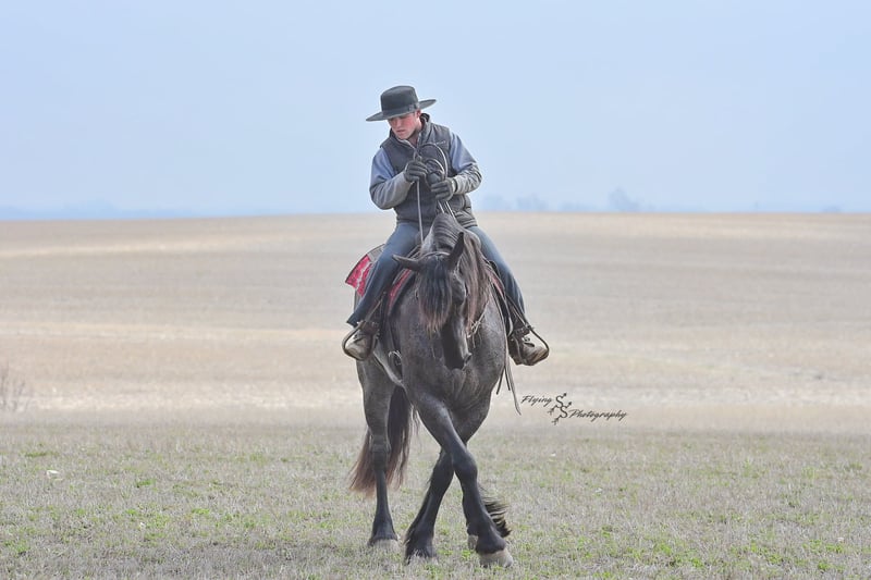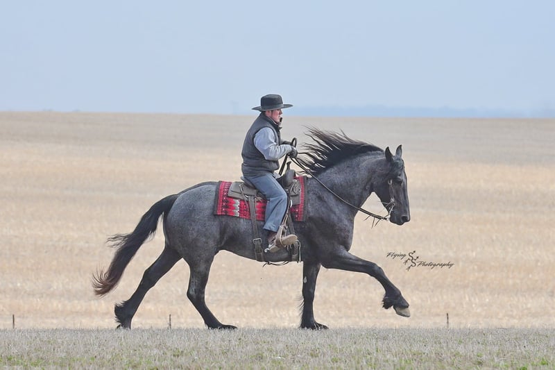 ONLINE AUCTION Place your bids at www.PlatinumEquineAuction.com Starting Bid $3500 Auction ends July 13th 2025 Need a new saddle? Check out White Rock Saddles on our website or Facebook! A. Tyler T. is a true blue roan, 16h, registered Friesian Heritage and Sporthorse International gelding. He has the color, class, and conformation; this nice young gelding checks every box. He is 16h, 75% Friesian and 25% Quarter Horse which has packed him with athleticism as well as elegance. Tyler has had a lot of versatility in his training. He rides western, English, bareback, bridleless, and drives! His riding, disposition, and overall maturity are out of this world for his age. Tyler takes pressure extremely well, especially for only being 4 years old. He has such a solid foundation. Tyler enjoys working in the arena, as well as spending time out on the trails and going through the obstacle course. He is very quiet on the trails and has been exposed to wildlife, downed timber and water. He is traffic safe when riding or driving and has even been to the parks in town! If you’re searching for a young, fancy gelding with the drive to be a performance horse backed by the disposition to be an in your pocket, best friend…. Tyler is who you need in your barn. He is comfortable around small children. We have led him with the kids in the saddle and even turned him loose with the youngsters in a controlled environment. Tyler also does well around other horses, livestock, and small pets, nothing phases him. He does wonderful in a stall or in a pasture setting and is easy to catch. Anyone with riding experience will get along well with him. Tyler is an honest individual! He lopes beautiful, correct circles, picking up his leads on cue. Tyler also has a very nice extended trot! He is a horse that is happy to work for you and truly aims to please. In the arena, Tyler is showing a lot of natural ability in dressage. He has the power and class to excel in that discipline. Tyler also looks beautiful and performs well in western tack! He also looks like royalty when hitched to a carriage. At such a young age, and with the foundation of training that he has had, the sky’s the limit for him. Tyler stands at a mounting block to be mounted and stands cross tied to be tacked up. He is an absolute gentleman for the veterinarian and farrier. Tyler is extremely gentle on the ground and loves attention, making him easy to handle. I have no complaints about this excellent gelding, and have no doubt that whoever buys him, will love him. He will come with a PPE on file and current coggins. If you would like radiographs, I am happy to assist with that. If you would like to meet Tyler or have any questions prior to the auction ending, please call Edwin Raber 319-283-0616. Located in Fairbank, IA, we invite anyone to come see him in person and spend some time with us! ONLINE AUCTION Place your bids at www.PlatinumEquineAuction.com Starting Bid $3500 Auction ends July 13th 2025 Need a new saddle? Check out White Rock Saddles on our website or Facebook!