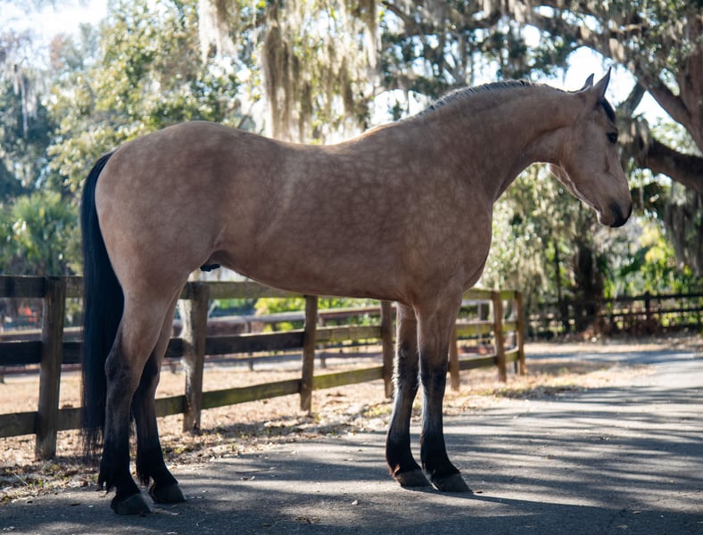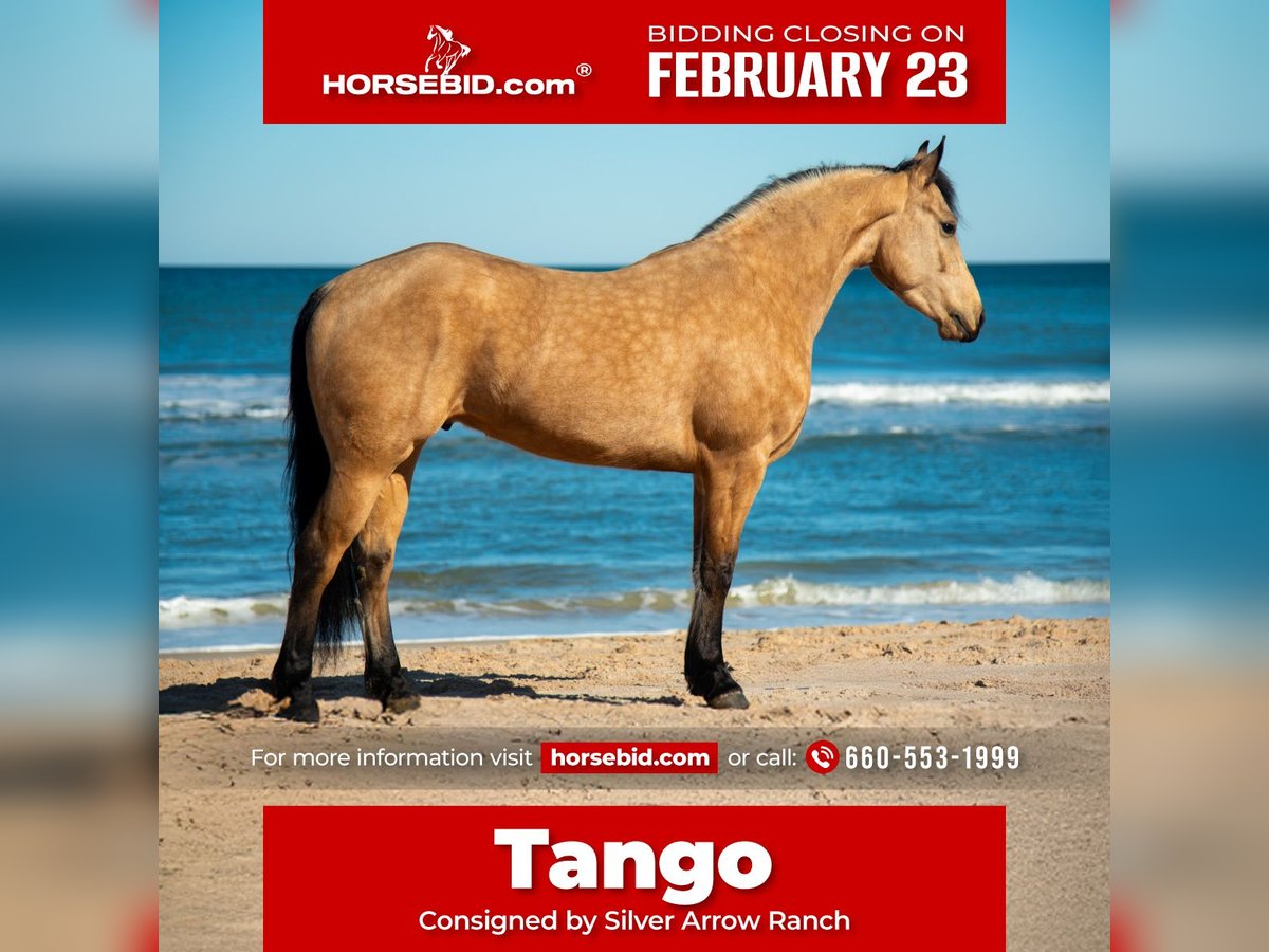 💎 𝐓𝐇𝐄 𝓓𝓲𝓪𝓶𝓸𝓷𝓭 𝐒𝐇𝐎𝐖𝐂𝐀𝐒𝐄 💎 Happening now thru MONDAY | FEBRUARY 23rd - Available EXCLUSIVELY on HorseBid's website! For more details and to register visit: www.Horsebid.com CONSIGNOR CONTACT: Silver Arrow Ranch 660-553-1999 LOCATION: Ocala, FL BREED: Friesian cross REGISTERED: No REGISTERED NAME: Tango COLOR: Buckskin HEIGHT: 15 AGE: 5 GENDER: Gelding Some horses are just pretty. Tango is the one that makes you feel something. He’s the buckskin Friesian cross that turns heads everywhere he goes, but what really gets you is how he feels to ride — athletic, balanced, talented, and naturally gifted, yet still comes with that magical “woah.” One day he’s schooling dressage. Another day he’s wandering quietly down the trails. Then he’s on the beach, ears forward, completely taking it all in. See a jump? He’s game. Load up and go somewhere new? No problem. Tango has seen the world and genuinely enjoys it. And on the ground? That’s where he completely steals your heart. Puppy dog personality. Easy to catch. Easy to load. Easy to shoe. He ground ties, cross ties, single ties — the kind that just wants to be your buddy. The type of Friesian everyone hopes they’ll find… …but rarely ever do.