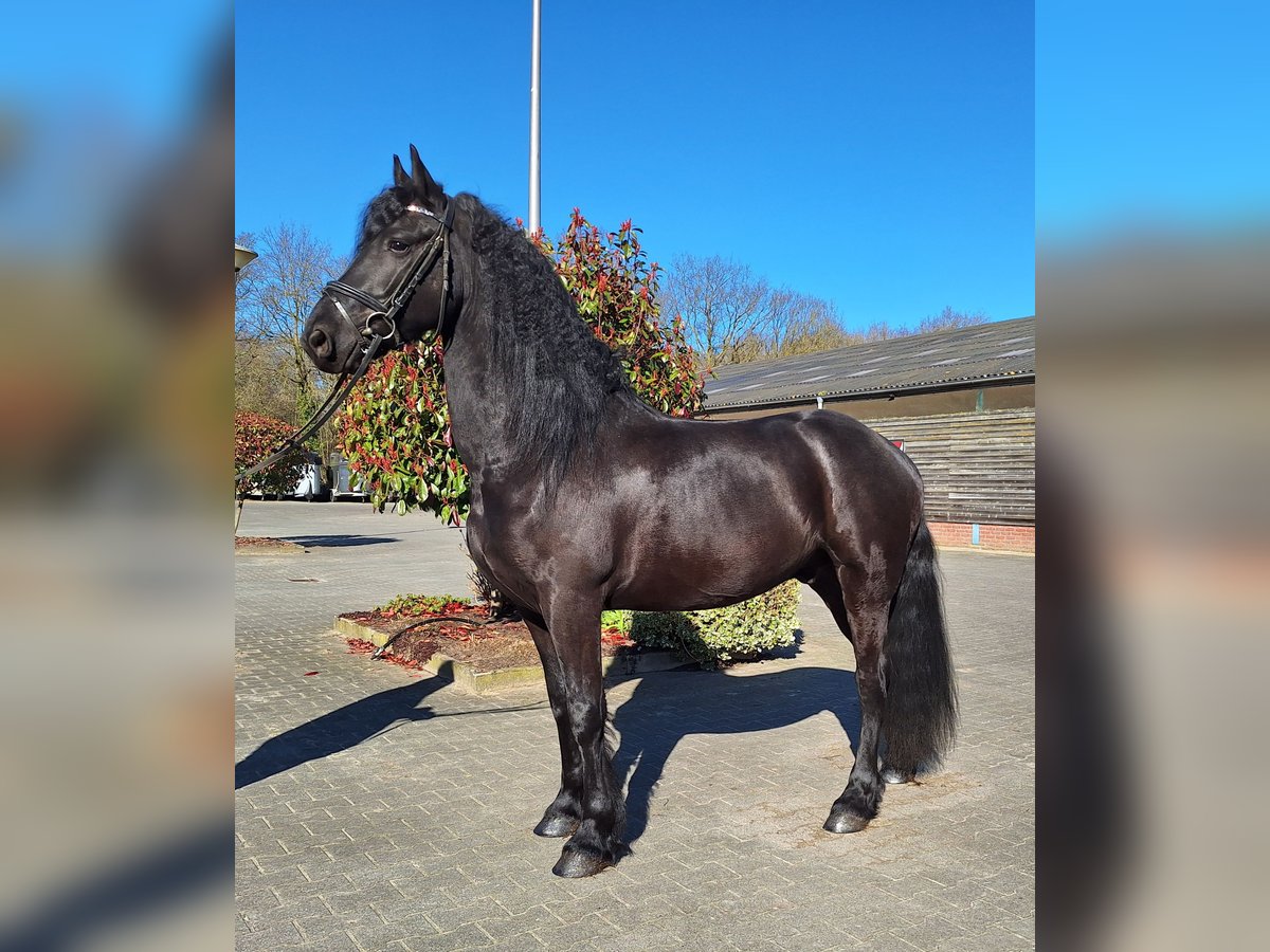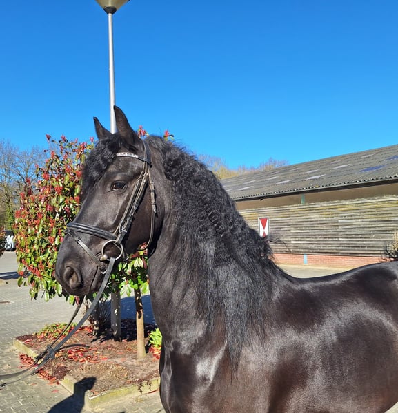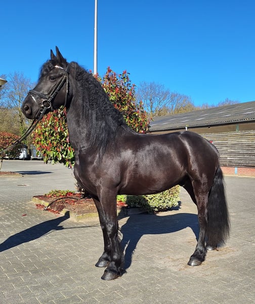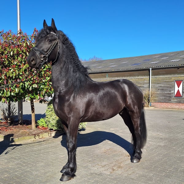 Meindert ist ein 5-jähriger Friese Wallach. Er ist etwa 1,64 m groß. Ein Pferd mit guten Bewegungen und einer luxuriösen Ausstrahlung. Im Umgang ist Meindert unglaublich lieb und geduldig. Er liebt Aufmerksamkeit. Unter dem Sattel ist Meindert sehr vorwärts und arbeitswillig. Er wird auf B-Niveau geritten und reagiert gut auf die Hilfen. Aufgrund seines energischen Charakters unter dem Sattel halten wir ihn derzeit nicht für geeignet für einen ängstlichen, unsicheren oder unerfahrenen Reiter. Meindert könnte sicherlich für den Sport geeignet sein, aber auch einen Ausritt findet er schön. Er ist brav beim Schmied und kennt das Reisen im Lkw und Trailer. Meindert wurde kürzlich röntgenologisch untersucht und als sporttauglich befunden. Eine Nachuntersuchung ist möglich. Für weitere Informationen können Sie am besten über WhatsApp oder telefonisch Kontakt aufnehmen: +31641043916.