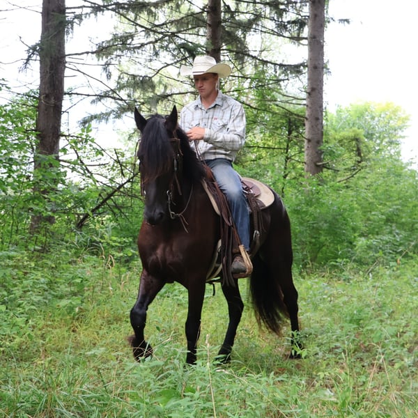 🍂 𝓐𝓾𝓽𝓾𝓶𝓷 𝑨𝑳𝑳 𝑺𝑻𝑨𝑹 𝑳𝑰𝑵𝑬𝑼𝑷 🍂 Happening now thru MONDAY | OCTOBER 6th - Available EXCLUSIVELY on HorseBid's website! For more details and to register visit: www.Horsebid.com CONSIGNOR CONTACT: Philip Bontrager's Horsemanship 989- 387- 7441 LOCATION: Howell MI BREED: 75%Freisian 25%perchoron REGISTERED: No REGISTERED NAME: Cole COLOR: Black HEIGHT: 16.1 AGE: 5 GENDER: Gelding If you are looking for a horse who’s tall, dark, handsome and who wants to be your best friend, I would like to introduce you to Cole. He is a beautifully jet black, 5 year old, 75%Friesian 25%Percheron gelding. He is sired by Darth and out of a Percheron Friesian X mare. Cole stands at 16.1hh and is put together perfectly. He has a long thick mane and tail and feathering on his legs. If Cole was a human, he would be the life of the party and the guy everyone wants to know. If you pass his stall, he tilts his head sideways and pokes his adorable nose out to say hi! He just oozes personality. If you ask He’s a total people pleaser. He has been trained with natural horsemanship methods. Cole is very well broke walk, trot, and canter. He knows his leads and has effortless transitions both up and down. He rides in a simple snaffle and will move off of seat and leg pressure. Cole has a very well balanced canter and holds his rhythm with little guidance from his rider. Cole is schooling basic dressage moves and shows great potential. He also jumps around inside and out in fantastic form. He will not shy away from the jumps and is very easy to find a distance on. He has been out on the back roads and ridden around some of Michigan’s beautiful hunt country. Brush, hills, water, dogs, traffic, wildlife, all no issue. Cole is also broke to drive and looks stunning pulling a carriage. This is the type that will be right there for you all day, every day and do everything in his power to please. He’s safe, he’s sensible, he’s full of personality, and he is ready to find his person! He lives in Howell, MI 48855 and will speak for himself in the video. Please contact 989 387 7441.