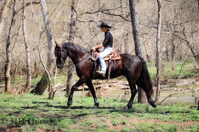 ONLINE AUCTION Place your bids at www.PlatinumEquineAuction.com Starting Bid $3500 Auction ends April 6th, 2025 Need a new saddle? Check out White Rock Saddles on our website or Facebook! This is “ARCHIE”, a super gentle, well trained, well behaved, and well mannered registered FRIESIAN SPORT HORSE GELDING that is broke to ride and drive. He stands 16.2 hands tall and is 5 years old. He is well bred. He can be ridden or driven by any level rider or teamster. He is obedient, calm, and rides relaxed on a loose rein. He lopes collected and cool and stops easily on whoa. He stands to harness, hitch, tack, mount, and groom. He can be hitched and driven by novice teamsters with no issues. He is a solid, seasoned, experienced, and easygoing gelding that anyone will love to be around and ride. He is smooth at the trot and canter, he walks out nicely and is patient. He likes attention and get along well with other horses. He is friendly, peaceful, and honest. Don’t miss out on a nice registered Sport Horse that anyone can get along with. Located in Flemingsburg, KY. Contact HH Horses Erin 304-238-4155 ONLINE AUCTION Place your bids at www.PlatinumEquineAuction.com Starting Bid $3500 Auction ends April 6th, 2025 Need a new saddle? Check out White Rock Saddles on our website or Facebook!