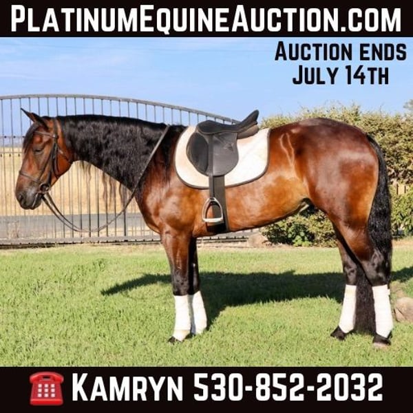 ONLINE AUCTION Place your bids at www.PlatinumEquineAuction.com Starting Bid $3500 Auction ends July 14th, 2024 Need a new saddle? Check out White Rock Saddles on our website or Facebook! Meet Classy, the 6 year old 15.1 hands and dapple bay stunning mare who is truly a heart-stealer! Wherever she goes, she turns heads and captures hearts with her charming personality and impeccable manners. This friendly beauty will follow you around like a loyal dog, eager to be your faithful companion. Classy boasts an impressive, flowing mane and tail that will make her the envy of any stable. She’s not just a pretty face – this girl is FANCY BROKE and a true champion in the arena. Her smooth, easy trot and canter make for a comfortable ride, whether you’re on a loose rein or collected. She’s happy to work either way, with a great stop and the ability to really respond to your legs. Side passing, counter arching, and doing diagonals are second nature to her. Classy has also shown her versatility by packing the flag beautifully. She’s been ridden English, taken over jumps, and even dabbled in dressage with remarkable ease. Her grace and beauty make her a showstopper in both English and Western disciplines and would excel in the shower ring. But that’s not all – Classy is also a trail trooper, ready to tackle any terrain. She confidently navigates long tangled grass, rocky paths, mud, water, ditches, logs, and dense trees. She’s seen it all on the trails: wildlife, hikers, dogs, dirt bikes, and quads, and she handles it all with calm composure. Busy roads and rushing cars? No problem for Classy – she remains unfazed. Though she has a more relaxed, “woah” temperament, Classy has the “go” when you ask for it. She’s like a gelding in her demeanor, not mareish at all, and gets along wonderfully with other horses. She’s been hauled and packed with geldings without a hitch. Classy has also proven to be an excellent lesson horse, boosting confidence in her riders with her honesty and gentle nature. She’s perfect for those seeking a trustworthy and experienced partner, whether you’re looking to excel in the show pen or enjoy peaceful trail rides. Don’t miss the opportunity to make Classy your own – she’s as close to perfect as they come! Contact us today at KW Ranch and Performance Horses Kamryn 530-852-2032 to meet this extraordinary mare and see for yourself why everyone adores her. Located in Pleasant Grove, CA. ONLINE AUCTION Place your bids at www.PlatinumEquineAuction.com Starting Bid $3500 Auction ends July 14th, 2024 Need a new saddle? Check out White Rock Saddles on our website or Facebook!
