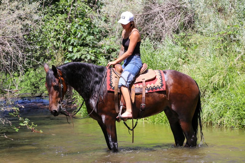 ONLINE-AUKTION Geben Sie Ihre Gebote unter www.PlatinumEquineAuction.com ab. Startgebot $3500 Die Auktion endet am 14. Juli 2024. Brauchen Sie einen neuen Sattel? Schauen Sie sich White Rock Saddles auf unserer Website oder Facebook an! Lernen Sie Classy kennen, die 6 Jahre alte, 15,1 Hände große, dapple bay Stute, die wirklich ein Herzensbrecher ist! Wo immer sie auftaucht, zieht sie die Blicke auf sich und erobert die Herzen mit ihrer charmanten Persönlichkeit und ihren tadellosen Manieren. Diese freundliche Schönheit wird Ihnen wie ein treuer Hund folgen und Ihnen ein treuer Begleiter sein. Classy verfügt über eine beeindruckende, wallende Mähne und einen Schweif, um die sie jeder Stall beneiden wird. Sie ist nicht nur ein hübsches Gesicht - dieses Mädchen ist FANCY BROKE und ein wahrer Champion in der Arena. Ihr geschmeidiger, leichter Trab und Galopp sorgen für ein angenehmes Reiten, egal ob am lockeren Zügel oder an der Hand. Sie arbeitet gerne in beide Richtungen, hat einen großartigen Stopp und die Fähigkeit, wirklich auf Ihre Beine zu reagieren. Seitengänge, Gegenbögen und Diagonalen sind für sie eine Selbstverständlichkeit. Classy hat auch ihre Vielseitigkeit bewiesen, indem sie die Fahne wunderschön verpackt hat. Sie ist Englisch geritten, über Sprünge gegangen und hat sich sogar mit bemerkenswerter Leichtigkeit in der Dressur versucht. Durch ihre Anmut und Schönheit ist sie sowohl in den englischen als auch in den westlichen Disziplinen ein echter Hingucker und würde auch im Duschring eine gute Figur machen. Aber das ist noch nicht alles - Classy ist auch ein Wanderreitpferd, das jedes Terrain meistert. Sie navigiert selbstbewusst durch langes, verworrenes Gras, felsige Pfade, Schlamm, Wasser, Gräben, Baumstämme und dichte Bäume. Auf den Wegen hat sie schon alles gesehen: wilde Tiere, Wanderer, Hunde, Geländemotorräder und Quads, und sie bewältigt alles mit ruhiger Gelassenheit. Belebte Straßen und rasende Autos? Kein Problem für Classy - sie bleibt unbeeindruckt. Obwohl sie ein eher entspanntes Temperament hat, ist Classy immer zur Stelle, wenn man sie braucht. In ihrem Verhalten ist sie wie ein Wallach, überhaupt nicht wie eine Stute, und sie versteht sich wunderbar mit anderen Pferden. Sie wurde schon problemlos mit Wallachen getrieben und gepackt. Classy hat sich auch als hervorragendes Unterrichtspferd erwiesen, das mit seiner Ehrlichkeit und seinem sanften Wesen das Vertrauen in seine Reiter stärkt. Sie ist perfekt für alle, die einen vertrauenswürdigen und erfahrenen Partner suchen, egal ob Sie auf dem Turnierplatz brillieren oder ruhige Ausritte genießen möchten. Verpassen Sie nicht die Gelegenheit, Classy zu Ihrem eigenen Pferd zu machen - sie ist so perfekt wie nur möglich! Setzen Sie sich noch heute mit KW Ranch and Performance Horses Kamryn 530-852-2032 in Verbindung, um diese außergewöhnliche Stute kennenzulernen und sich selbst davon zu überzeugen, warum sie von allen bewundert wird. Der Standort ist Pleasant Grove, CA. ONLINE-AUKTION Geben Sie Ihre Gebote unter www.PlatinumEquineAuction.com ab. Anfangsgebot $3500 Die Auktion endet am 14. Juli 2024. Brauchen Sie einen neuen Sattel? Schauen Sie sich White Rock Saddles auf unserer Website oder Facebook an!