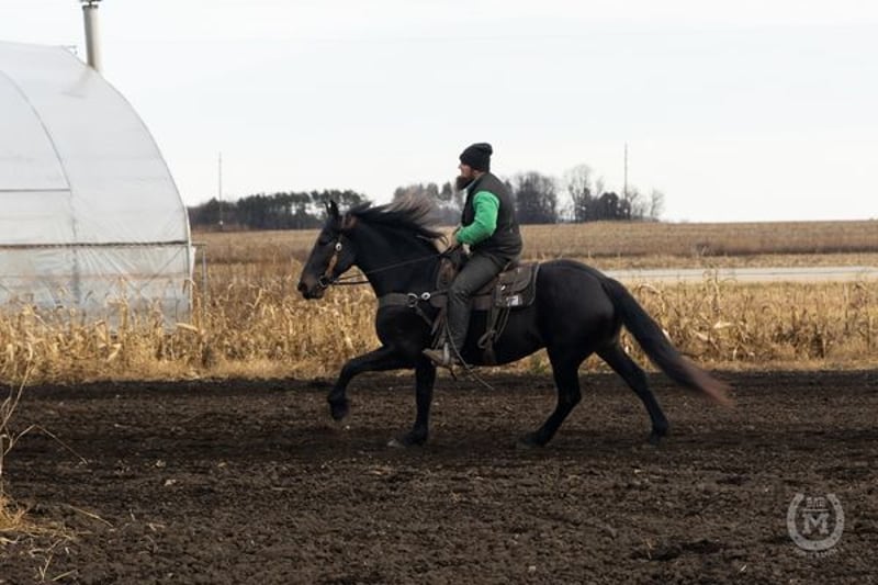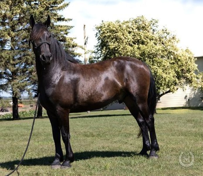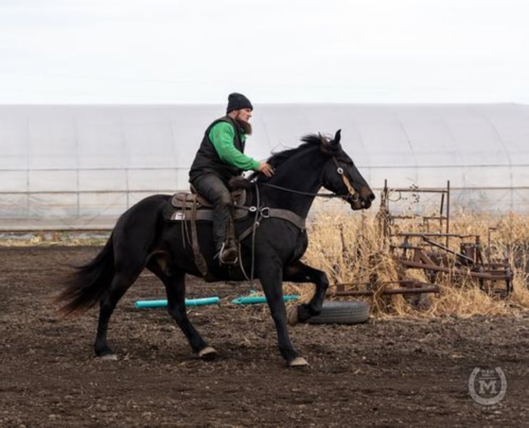 Bar M’s Ranger is a 5 year old 1/2 Friesian 1/2 Percheron cross gelding. He is registered with the International Draft Sport Horse Registry. Ranger’s mind is just as amazing as he is! He is very willing to learn new things. Crosses bridges, water, goes through obstacle courses with ease. Ranger has a very laid-back temperament. He loads the very best, stands for the farrier and loves his baths. Ranger is the first to meet you at the gate and he loves all the attention you can give him. Suitable for just about any level of rider. He is more on the lazy side, so if you are wanting to show or compete he’s not your guy but if you’re looking to just go for that leisurely trail ride, he is definitely the perfect horse for you!! Ranger stands a healthy 16 hands and has a big solid foot underneath him. Ranger is also broke to drive and is traffic safe. We have had him on all types of farm machinery and also driven him down many miles of highways. He is 100% sound in every way. Prepurchase exams are welcome. Come out to the ranch and check him out or WhatsApp us at +44 7514 111508. Located in 54 North Promenade DORSINGTON CV37 6EU