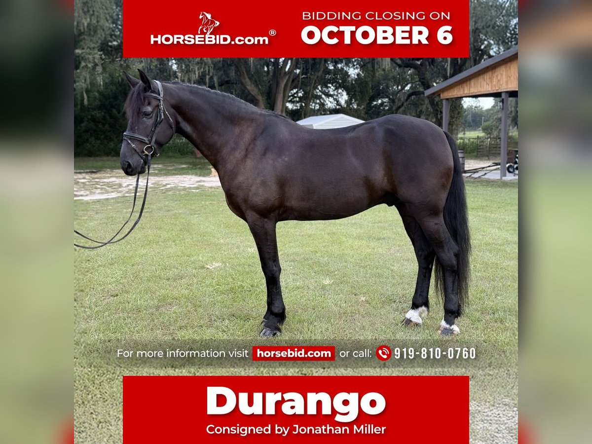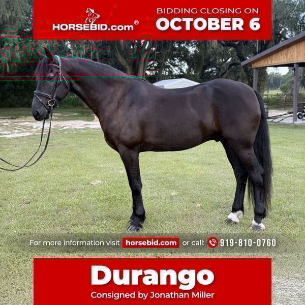 🍂 𝓐𝓾𝓽𝓾𝓶𝓷 𝑨𝑳𝑳 𝑺𝑻𝑨𝑹 𝑳𝑰𝑵𝑬𝑼𝑷 🍂 Happening now thru MONDAY | OCTOBER 6th - Available EXCLUSIVELY on HorseBid's website! For more details and to register visit: www.Horsebid.com CONSIGNOR CONTACT: Jonathan Miller 919-810-0760 LOCATION: Ocala FL BREED: FRIESIAN X Morgan. REGISTERED: Yes REGISTERED NAME: Stonecreck Acres Durango COLOR: Black HEIGHT: 16 AGE: 6 GENDER: Gelding Durango Durango is a 6-year-old, 16-hand registered Morgan/Freisian gelding with an excellent start and a heart of gold. He’s been in the same family for the past two years, but due to the owner’s demanding work schedule, he hasn’t been ridden consistently. As a result, he’s still green—but incredibly kind, honest, and ready to go in the right hands. Think project type but kind. Durango walked right up our bridge and through the pool noodles without hesitation. Talk about willing! Durango does leg yields, counter canter, shoulder-in/out, and lengthening. The main focus to the new buyer should be on a steady collection and straightness. He’s a forward-thinking type who wants to please and tries hard to get it right. He’s also shown natural talent in his first cross-country outing—happily tackling ditches, logs, banks, and water with no fuss. While he still needs formal training—particularly in developing a steady connection—Durango has the brain, movement, and stamina to shine in Dressage, Eventing, or Combined Driving. He is not for a beginner, but would be an exciting project for an experienced or ambitious rider looking to bring a willing horse up the levels. And yes—he also drives fantastic! This boy is versatile, fun, and full of potential. Durango just needs someone who has the time to invest in his future. He’s the kind of horse who will give back everything you put into him.