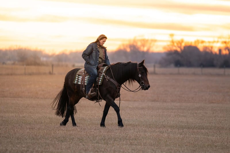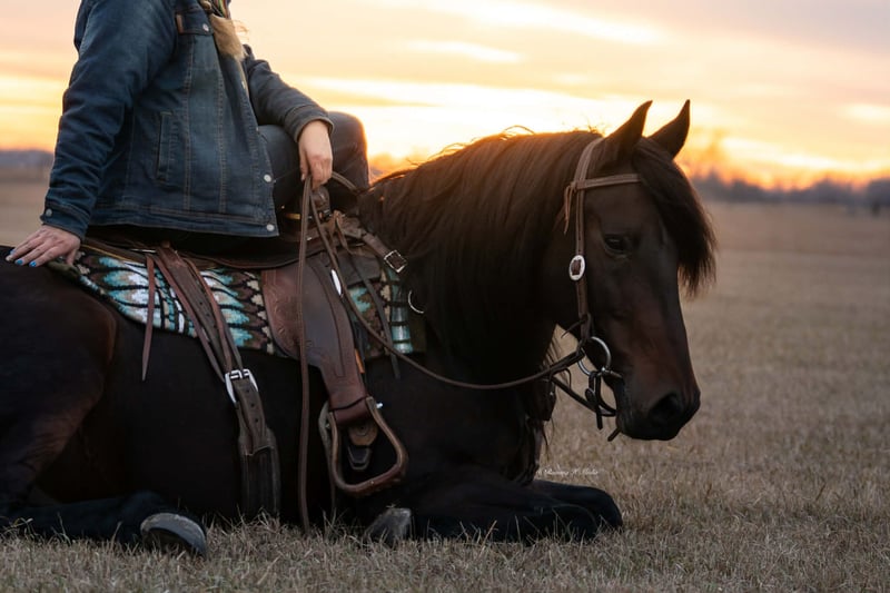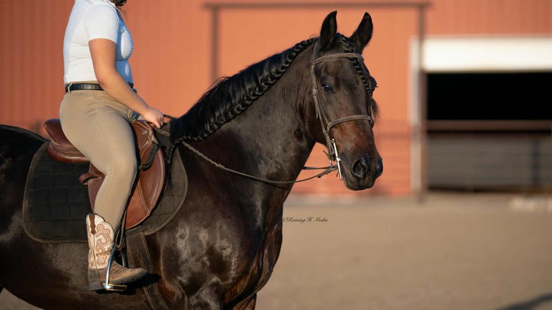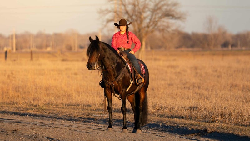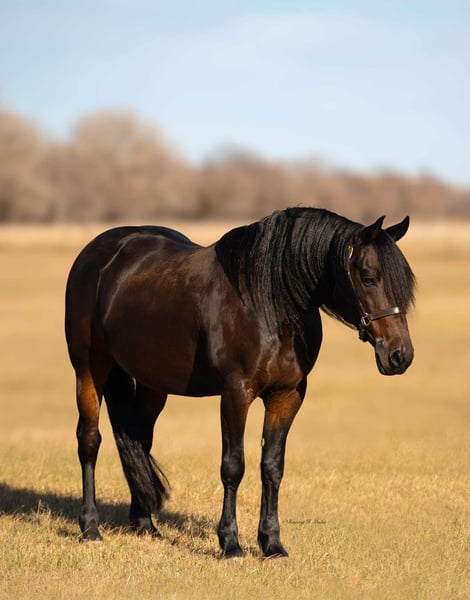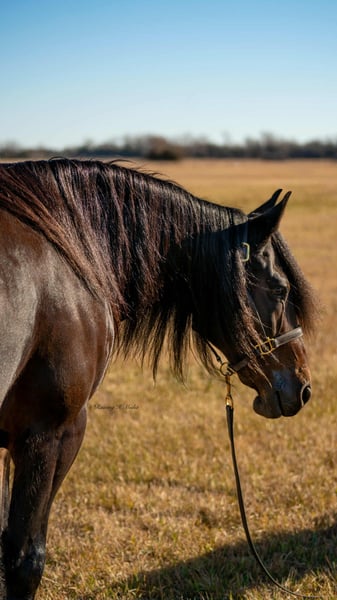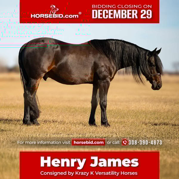 ⚜️ 𝓗𝓮𝓻𝓲𝓽𝓪𝓰𝓮 𝐖𝐢𝐧𝐭𝐞𝐫 𝓒𝓵𝓪𝓼𝓼𝓲𝓬⚜️ Happening now thru MONDAY | DECEMBER 29th - Available EXCLUSIVELY on HorseBid's website! For more details and to register visit: www.Horsebid.com CONSIGNOR CONTACT: Krazy K Versatility Horses 308-390-4873 LOCATION: Grand Island, NE BREED: Friesian cross REGISTERED: Yes REGISTERED NAME: Titus D Rocks COLOR: Black Bay HEIGHT: 15 AGE: 7 GENDER: Gelding Here ya go, folks! A horse that can do it all. He has not only been a barn favorite, but he has also been my very own personal favorite (and I am VERY PICKY). Allow me to tell you about this unicorn we call Henry James. Henry James is just the right height, standing a hair north of 15 hands. He is rich in color, black all over with chocolate accents. He has a mane and tail that most only dream about. Oh, and let me tell you about his personality. He is quiet and calm, a true steady Eddie. He will come when you call his name, usually at a trot! He has a funny, curious personality. But being respectful is at the top of his list. Henry James is easy to get along with, for both horses and people! He is also durable – or may I say wise enough to take care of himself. There is not one blemish on this beautiful boy, and he makes good decisions to keep it that way! Henry could live in a junk yard with a three ring circus next door and would still be injury free and quietly observing all the entertainment with an amused look on his face. Henry is kind and patient for the farrier. He is easy to shoe, but honestly, unless we are heading out into really rocky terrain, Henry James is perfectly fine barefoot. He has never taken a tender step and has proven himself to be as tough as a summer day is long. Henry is just a good-looking fellow. He seems to be able to stay in a world show condition on a round bale in a dry lot. He has lived in a box stall and has also spent months turned out with a herd of other horses. Either way, he is happy and content and easy to keep weight on. Wherever he is, he seems to be as neat as your granny at a Sunday brunch! Which is worth a lot at the end of a long day of cleaning stalls! All of these aspects are just the gravy on top, but let me tell you how he is to use and enjoy… Henry James rides both western and English or just climb aboard, bareback, in a halter if you need a therapeutic walk to bring you back to what matters most. We have taken him over down trees and cross rails a handful of times, which he jumps with grace and beauty! And ohhh, have you seen him pull a buggy? He is the easiest horse I have ever driven, and boy, does he look elegant - he can level up your Thanksgiving traditions or blow your Pinterest level wedding out of the water! No worries about traffic - we were asked to use him for a commercial on the down town streets, and he acted like the true gentleman he is. Henry James will ride one handed or two in just about any bit you like, but if you ask him what his very favorite is, he will tell you a smooth snaffle bit ridden two-handed. To add to this very long list of amazing things about Henry James, he is good with being ridden every day or just as great with time off - no worries, we have tried it and we know him well! Rather, it be a week off or 6 months off, he will pick up where you left at, if not be even better than what you remember. He is a quick study. I taught him to lay down in one day - he doesn't lay down as seamlessly as a camel on command, but I promise it is adorable how he grunts when he wallers down to his belly. Can you tell yet how much I truly love this horse? I really do. We are only listing him here because I want what is best for him - I want him to be someone's main man. My career revolves around showing Versatility Ranch Horse shows with the American Quarter Horse Association. While I know Henry is amazing, he doesn't fit in that box. I am just too immersed in the AQHA show industry for Henry James to have the spotlight that he deserves. So I am hoping his forever family finds him here. You will see it all in his video, so please take the time to watch it if his pictures and write-up speak to you. Henry James rides, drives, and does tricks. He is unfazed and very entertained by all obstacles - logs, water crossings, drags, ropes, cattle, tarps, hula hoops, and a big bouncy ball. He is all I have described and more. Please call if he sounds like the horse you have been searching for - he is truly a dream come true.