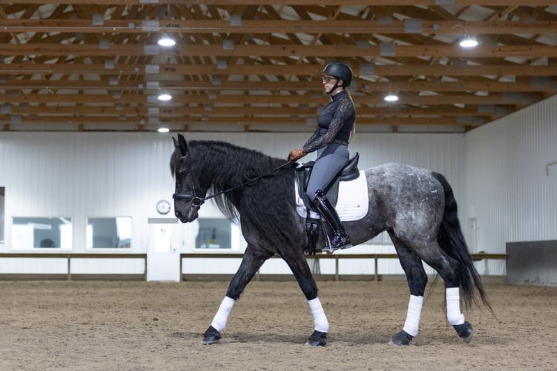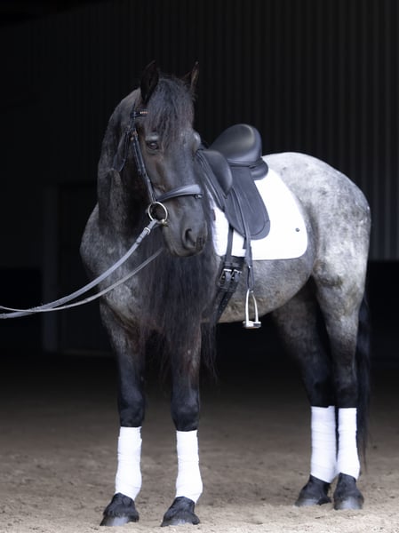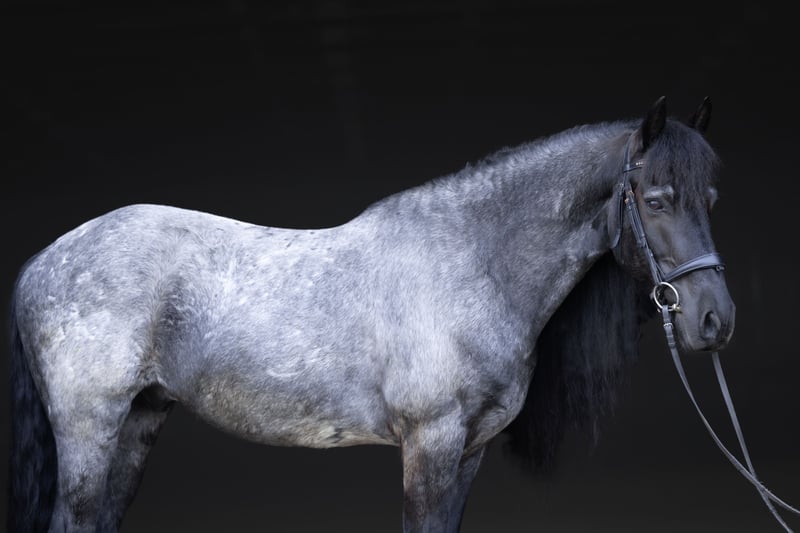 ⚜️𝐭𝐡𝐞 𝓔𝓵𝓲𝓽𝓮 𝐒𝐩𝐫𝐢𝐧𝐠 𝐂𝐥𝐚𝐬𝐬𝐢𝐜⚜️ Happening now thru MONDAY | APRIL 20th - Available EXCLUSIVELY on HorseBid's website! For more details and to register visit: www.Horsebid.com CONSIGNOR CONTACT: Legacy Sport Horses 219-644-5067 LOCATION: Michigan City, IN BREED: Friesian QH Cross REGISTERED: REGISTERED NAME: Ash COLOR: Blue Roan HEIGHT: 15 AGE: 8 GENDER: Gelding Ash is a Friesian/Quarter Horse cross with the kind of quiet, steady confidence that makes him a truly enjoyable horse to have in any program. He is naturally more “whoa” than “go,” with an extremely smooth trot and canter, a comfortable ride, and a calm, unbothered mindset. He is not spooky and handles new situations with a relaxed, sensible attitude. Under saddle, Ash is straightforward, reliable, and easy to ride. He has been ridden by a variety of riders and is the type that allows his rider to settle in and enjoy the ride. Whether in the arena or out on the trail, he stays consistent, relaxed, and willing, making him a great option for adult amateurs, younger riders, or anyone looking for a comfortable, confidence-inspiring partner. On the ground, Ash takes a little time to get to know new people, but once he does, he is very affectionate and enjoys attention. He is well-mannered in daily handling and easy to have around. Ash is the kind of horse that combines comfort, reliability, and personality. With his steady nature, smooth gaits, and striking look — including his signature long mane — he is a horse that is easy to enjoy both in and out of the saddle.