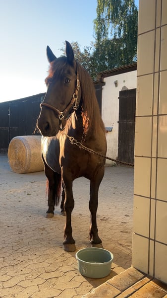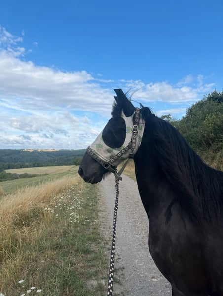 No beginner horse!!!! Unfortunately, I have to sell my eight-year-old Friesian gelding. I simply cannot do him justice, and he doesn't deserve that. I have had him since he was 3 years old. He will be sold with ALL of his equipment (passport, saddle, bridle, grooming kit, halter, blankets, boots, etc.) as it is incredibly difficult for me to sell him, and I want everything to go with him. He is approximately 1.60m tall, barefoot, and lives in a paddock. He spent a longer time in a dressage stable but was raised in a paddock environment, so he is familiar with both. Small children have already sat on him; he knows dogs, sheep, basically everything. He is in perfect health, has all vaccinations including the herpes vaccination. However, a vet check can be done if the costs are covered. Due to a lack of time, he is currently not in training; we have gone out for rides occasionally, but that’s about it. I am really looking for a wonderful home for him! More pictures available privately. If you are seriously interested, please send a message. I will get back to you as soon as possible.