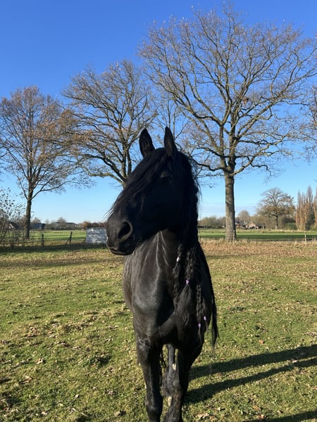 Te koop aangeboden: prachtige Arabo-Fries merrie Jente. Gegevens: Naam: Jente Geslacht: Merrie Geboren: 20-06-2016 Vader: Wietse 462 Moeder: Thea J. Moedersvader: Yk Dark Danilo Stokmaat: ca. 1.68 m Over Jente: Jente is een mooie, rastypische merrie met een fijne afstamming en een elegante uitstraling. Ze is recreatief gereden, maar heeft de afgelopen weken wat minder training gehad vanwege tijdgebrek. Om deze reden is het belangrijk dat een nieuwe eigenaar haar rustig en correct weer oppakt. Jente is werkwillig, leergierig en prettig in de omgang. Ze heeft veel energie en is daarom minder geschikt voor een beginnende of onzekere ruiter. Ze heeft een ruiter nodig die duidelijk en consequent leiding geeft. Met de juiste begeleiding laat ze zich fijn rijden en toont ze haar kwaliteit. Daarnaast is Jente bekend met grondwerk en is ze academisch opgeleid, wat haar extra interessant maakt voor ruiters die hier verder mee willen werken. Jente is een eerlijk paard met veel potentie en zal nooit gemeen gedrag vertonen. Overig: Keuren toegestaan (kosten koper) Locatie: Gaanderen, Gelderland Voor meer informatie of filmpjes, stuur gerust een bericht. Jente gaat alleen naar een 5 sterren huisje!