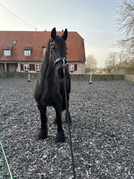 Verkaufe meine brave Friesen-Stute, geboren im Jahr 2015 und Stockmaß 163cm. Wietske geht sowohl alleine als auch in der Gruppe souverän und unerschrocken ins Gelände und kennt den Reitplatz. Geht im Schritt und Trab alle Seitengänge und problemlos alle Grundgangarten. Wietske hat keinerlei Unart, ist sehr brav im Umgang und durch ihre ruhige und durchaus auch gemütliche Art auch was für ängstliche Reiter, Anfänger oder Kinder. Wer ein „spritziges“ Pferd sucht, wird mit ihr jedoch vermutlich nicht glücklich. Sie ist zur Zeit Barhufer und steht in einer gemischten Herde im Offenstall, kennt aber von ganz früher auch Boxenhaltung. Ihr ausgeglichenes Wesen macht sie zu einer idealen Begleiterin für Freizeitreiter. Wietske ist leider Sommerekzemer und muss daher im Sommer eingedeckt werden, kommt so aber gut durch den Sommer. Regelmäßig entwurmt und regelmäßig beim Zahnarzt. Keine Händleranfragen, Platz vor Preis!
