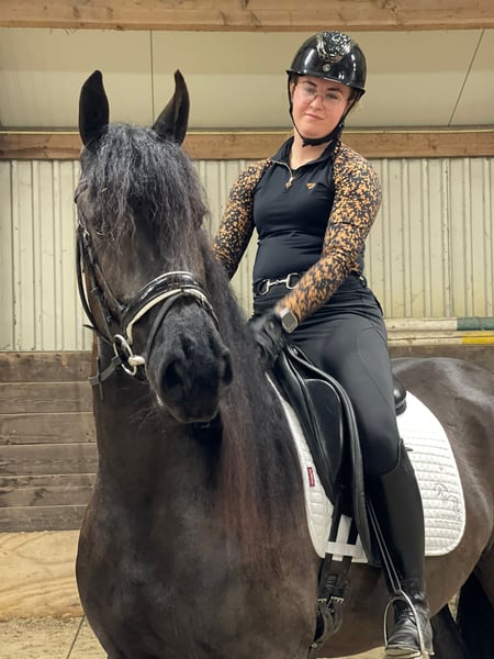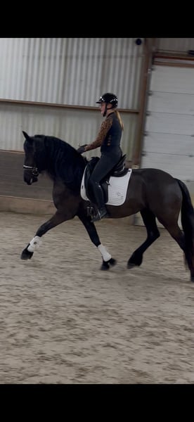 Maak kennis met Yentel: een prachtige 3-jarige Friese merrie met uitstraling, kracht én kwaliteit. Recent beleerd onder het zadel en klaar om verder ontwikkeld te worden. Met een huidige schofthoogte van circa 164 cm en nog volop in de groei, is Yentel een imposante verschijning. Ze valt direct op door haar krachtige bouw, ruime bewegingen en natuurlijke balans. Een paard dat gezien mag worden. Wat Yentel echt bijzonder maakt, is haar karakter. Ze is vriendelijk, werkwillig en zeer leergierig. Ze denkt mee, pakt nieuwe dingen snel op en werkt graag voor haar ruiter. Ondanks haar jonge leeftijd laat ze nu al zien dat ze over de juiste instelling beschikt om uit te groeien tot een fijn sport- of recreatiepaard. Haar afstamming liegt er niet om: een dochter van Alger 522, uit een moeder van Thorben 466. Dankzij haar lage verwantschap van 17,4 is zij bovendien zeer interessant voor de fokkerij. ✔ Recent beleerd onder het zadel ✔ Krachtig, ruim bewegend en in balans ✔ Fijn, betrouwbaar karakter ✔ Jaarlijks correct geënt ✔ Interessant voor sport én fokkerij Keuren is uiteraard toegestaan (kosten koper). Ben jij op zoek naar een jonge Friese merrie met potentie, uitstraling en een gouden karakter? Dan is Yentel absoluut een bezichtiging waard. Voor meer informatie of het maken van een afspraak bel of whatsapp naar: 📞 Sanne 06-42507861