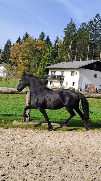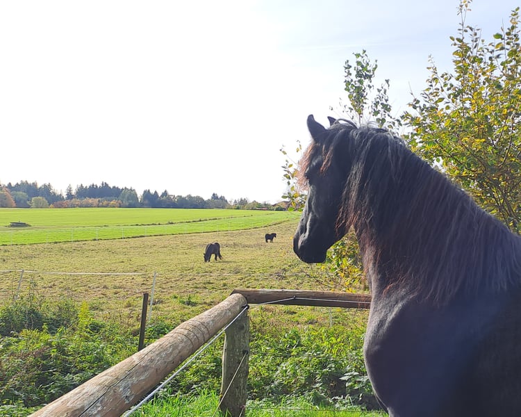 Vanda is a 3.5-year-old Friesian mare with excellent KFPS lineage (Eise 489*Onne 376). Her gentle nature and lovable character leave nothing to be desired. She is a horse with charm and charisma, very close to humans. Vanda has correct conformation and good movement; she is resilient and clear-minded. She would also be of interest for breeding purposes. Currently, Vanda measures 16.1 hh. She is lunged according to her age and is a quick learner who always aims to please. She is familiar with both paddock and box stabling. A home with a family environment is preferred.