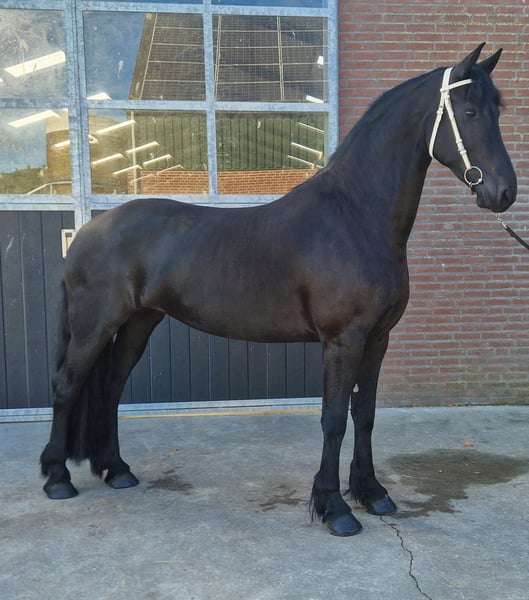 For Sale: A 4-year-old mare (Teun x Loadewyk), with a height of 1.66 m, saddle-trained. This beautifully conformed mare has a refined head, plenty of presence, and moves very well. She has a gentle temperament, is friendly in handling, and healthy. Currently, she is not in foal. Dam line: Kroon AA Pref - Ster - Ster Pref Her dam was awarded Preferent status through a first-premium Ster AA daughter of Jasper (whose first daughter recently also achieved Ster status), a highly breed-oriented son of Markus, and two daughters of Teun. An interesting mare for breeding and sport. Directly available from the breeder. All veterinary inspections permitted. K.K. For more information, CALL +31 646762880