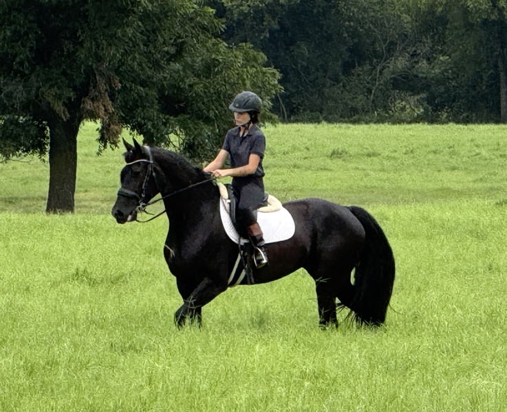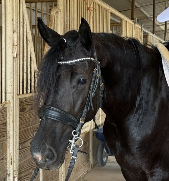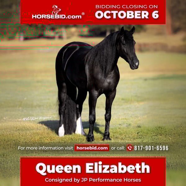 🍂 𝓐𝓾𝓽𝓾𝓶𝓷 𝑨𝑳𝑳 𝑺𝑻𝑨𝑹 𝑳𝑰𝑵𝑬𝑼𝑷 🍂 Happening now thru MONDAY | OCTOBER 6th - Available EXCLUSIVELY on HorseBid's website! For more details and to register visit: www.Horsebid.com CONSIGNOR CONTACT: JP Performance Horses 817-901-6596 LOCATION: Weatherford, TX BREED: Friesian/Morgan Cross REGISTERED: No COLOR: Black HEIGHT: 15.2 AGE: 4 GENDER: Mare Queen Elizabeth is the epitome of equine elegance and grace. With the presence of a Queen and the heart of a lady, it has been an absolute honor to own such a stunning and sweet-natured horse. We are proud to offer Queen Elizabeth to someone in search of their DREAM horse. At just 4 years old, Queen Elizabeth has her whole life ahead of her—and the talent, temperament, and training to make anyone’s dreams come true. She’s not only breathtakingly beautiful, but also incredibly kind, intelligent, and eager to please. I can’t stress enough how sweet natured she is. She loves to have attention and will follow you like a dog. Versatility at Its Finest: • Rides Western and English • Trail safe – goes through water, traffic, and open fields with ease • Started over jumps • No spook, no buck, no nonsense • Rides bareback in a halter A lady in Every Way: • Excellent for grooming and farrier • Stands quietly in cross ties • Loads and unloads like a pro • Calm, steady, and trustworthy in all situations Queen Elizabeth would excel as a dressage prospect, show horse, or continue as a versatile all-around partner. Whether you're looking for a standout in the show ring or a best friend on the trails, Lizzy has it all—beauty, brains, and a big heart. We have taken her on multiple trail rides, (even a midnight trail ride in the full moon), rode her in parades, started in dressage and over Jumps. She is literally the kind that never says no to whatever you ask her to do. You call her name and she comes running in the pasture. Gets along well in a herd or does great in stall. Very easy keeper. Please reach out to Jackie with JP Performance Horses at 817-901-6596 to schedule a time to see Queen Elizabeth in person or FaceTime video for those to far to drive to see her. Shipping can be arranged anywhere!