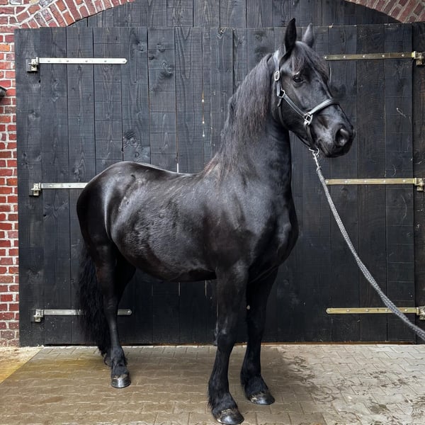 Zum Verkauf steht unsere 6 jährige Friesen Zuchtstute, mit einer interessanten Abstammung. Geboren: 05/2019 Abstammung: Omer 493 x Fetse 349 x Feitse 293 Stockmaß: 163 cm Unsere Stute überzeugt mit einem ruhigen und ausgeglichenen Gemüt. Brav und unkompliziert, verschmust und Menschenbezogen. Sie erwartet für April 2026 ein Fohlen von Jouwe 485. Unsere Stute eignet sich nach dem Fohlen sowohl für den Sport, Freizeit oder Zucht. Sie ist nicht geritten, kennt aber Bodenarbeit, ist gut erzogen und sozial