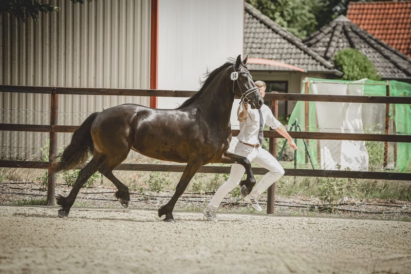 Meet Greta! Greta is a 7-year-old KFPS Friesian mare by Eise 489 out of a Teeuwis 389 dam, and she is registered in the KFPS studbook with a third premium. She was gently backed at four and has proven to be a reliable partner for everyone, through thick and thin. She is experienced in trail riding and show jumping, and is absolutely kid-friendly. Standing at 16.2 hands, she also suits taller riders. Her charming personality and excellent rideability make her a wonderful choice.