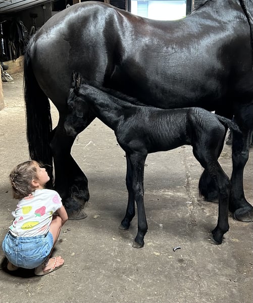 Wunderschöne tiefschwarze Stute mit Hengstfohlen zum Verkauf. Eleganter, ausdrucksvoller Kopf, schöne Gänge und kräftiges Beinteil. Hat bereits vier schöne Fohlen bekommen, von denen das letzte im Kauf inbegriffen ist. Ist leicht zu handhaben und eine gute Mutter. Ist grundausgebildet, steht aber momentan still wegen des Fohlens am Fuß. Inzucht 1,37 Verwandtschaft 18,8 Mutterlinie 049