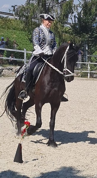 Frieda sucht ihren Menschen! 8 jährige Stute, sehr zuverlässig in Show und Training. Wurde auch von meiner 12jährigen Tochter geritten. Sehr tolles verschmustes Pferd fürs große Viereck oder Show.