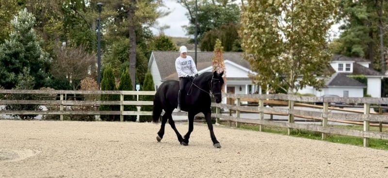 🎲𝓽𝓱𝓮 𝐑𝐈𝐃𝐄𝐑'𝐒 𝓒𝓱𝓸𝓲𝓬𝓮🎲 Happening now thru MONDAY | NOVEMBER 17th - Available EXCLUSIVELY on HorseBid's website! For more details and to register visit: www.Horsebid.com CONSIGNOR CONTACT: CM Farms 717-875-2061 LOCATION: Gap, PA BREED: Friesian/PercheronX REGISTERED: No REGISTERED NAME: Sienna COLOR: Black HEIGHT: 16.1-2 AGE: 7 GENDER: Mare Meet ✨Sienna✨ — aka the queen of the barn! 👑 This mare is truly breathtakingly beautiful. She’s a 7-year-old, 16.1–16.2hh, ¾ Friesian and ¼ Percheron cross mare. She has a long, flowing mane and tail, a beautiful neck, all the right curves, correct conformation, and striking beauty — and she knows it! She has just as good of a personality to match; she loves her people so much that she’ll come running in from the pasture when she sees you! She is truly a sweetheart in every way — and so talented at that. She rides English, Western, bareback, and drives! Sienna is the whole package — she can go any direction and loves to have a job. Sienna is the perfect horse for many disciplines. She’s fancy in the arena, and we could easily see her being a dressage queen with her talent, elegant movement, and sensible brain. She’s dropped jaws with her leg action — you’d think she’d be a lot of movement and suspension to ride; however, she’s one of the smoothest and most comfortable rides in the barn! “A comfortable Friesian?” — rare, I know, but she beats all the allegations as soon as you throw a leg over. We’ve ridden her bareback at the walk, trot, and canter — she’s that comfortable! She’s light on her feet, soft through the hand and leg, and easy to collect. This girl is incredibly smart, picks up new things fast, and retains information like no other. She’s smart as a whip, with great work ethic, forward thinking (without ever taking off), and has all the potential to get you to the top. Her trot and canter are adjustable, she does circles with grace and balance, and even has a sliding stop if you ask! She neck reins and direct reins, sidepasses, leg yields, and extends beautifully. This is a mare that loves to work, loves having a job, and is happy to put in the effort six days a week. Let her sit awhile and she’ll come out the same — maybe a little miffed you didn’t give her more attention — but always steady and reliable. She’s every AA and trainer’s dream, and one we always look forward to pulling out for a ride. She’s fun in every way and safe for a variety of riders. On the trail, Sienna has plenty of miles and always walks like she’s on a red carpet. 💃 She’s sure to get noticed with her happy ears, precious demeanor, and the sparkle in her eyes. She enjoys life and would love someone who’s as carefree as she is! She’s a powerhouse — one that can’t be rattled even by the spookiest of things. This lady is 100% traffic and equipment safe, bike and hiker proof. She’s been desensitized to the tarp, flag, smoke, and fire, and even brings a competitive game when it comes to the ball! She’s just as wonderful on a simple trail ride, with unflappable confidence that will carry you through (or over!) anything. She’s ridden right into busy towns, as well as quiet wooded trails and open fields. She’ll even let you sit the whiny kids on her back — and she’ll make them smile every time. Sienna has presence without being “mare-ish.” She loves her halfwit gelding colleagues and doesn’t get upset when they’re rambunctious or in her space. She minds her business in turnout and gets along with anyone and everyone. We can’t say enough good things about this mare. She even has a lovely jump! Whether you’re in the ring popping over crossrails and simple combinations, or going cross-country over solid fences — she’s honest, has cute form, perfect knees, and always a happy attitude to boot. She has tons of potential when it comes to jumping and just keeps getting better the more she learns. She’s so rewarding to bring along because you can truly see your work paying off — and she’ll make you proud! She’s been on hunter paces and schooled cross-country with us, and we could easily see her thriving in the hunt field. She doesn’t get hot or silly; you can put her anywhere in the group, and she stays calm, cool, and collected — you can even jump her around and walk off on a loose rein right after. She’s incredible in every way, she’s in her prime, and she has so much life to give. If you couldn’t tell by this lengthy and heartfelt write-up — we are incredibly fond of this mare. We want sweet Sienna to go to the right home, one that will appreciate and love her just as much as we have. She’s gorgeous, in your pocket, safe, and there’s not one single thing wrong with her. We see so much potential in this mare — whether you want to hit the show ring or have a best friend to adventure with — she is that girl. UTD on shots, farrier, dentist, deworming, and coggins- PPEs welcome!
