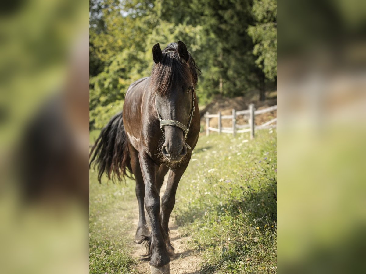 8-year-old Friesian Mare for Sale A very well-behaved Friesian mare is for sale. She is ridden at a basic dressage level and, with some additional work, would be suitable for dressage competitions. She is very calm and reliable on trail rides and is also suitable for children. She loads well onto a trailer and has no issues with showering, farrier work, or daily care. She is an extremely friendly and sociable horse. She has sweet itch (summer eczema), which is well managed with proper care. For sale only to a good home. The reason for sale is moving abroad.