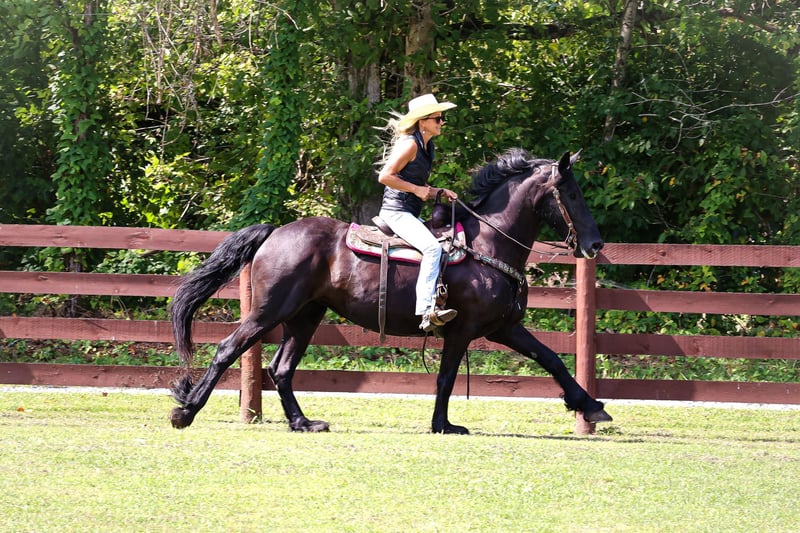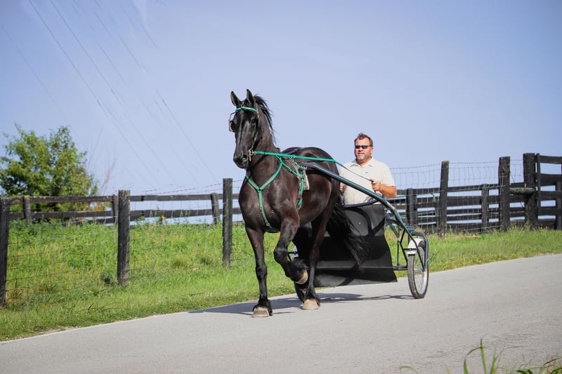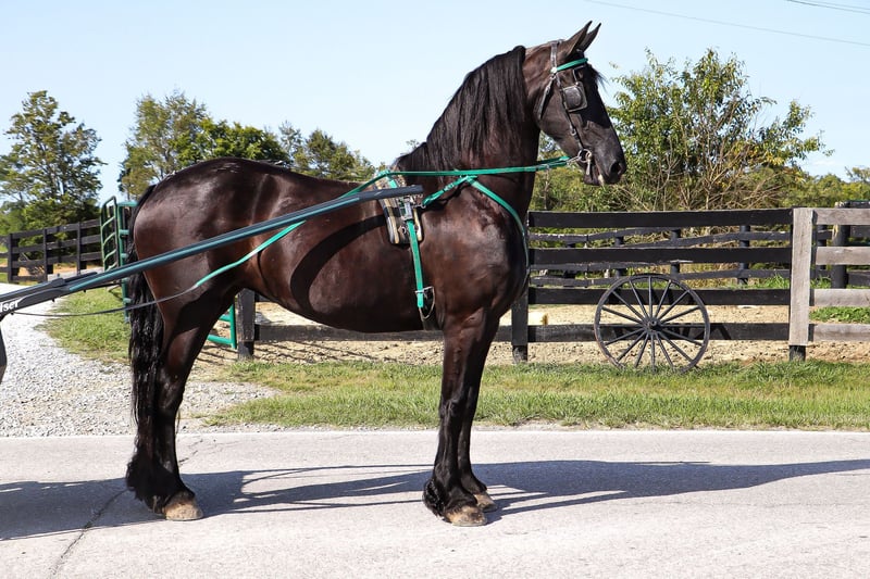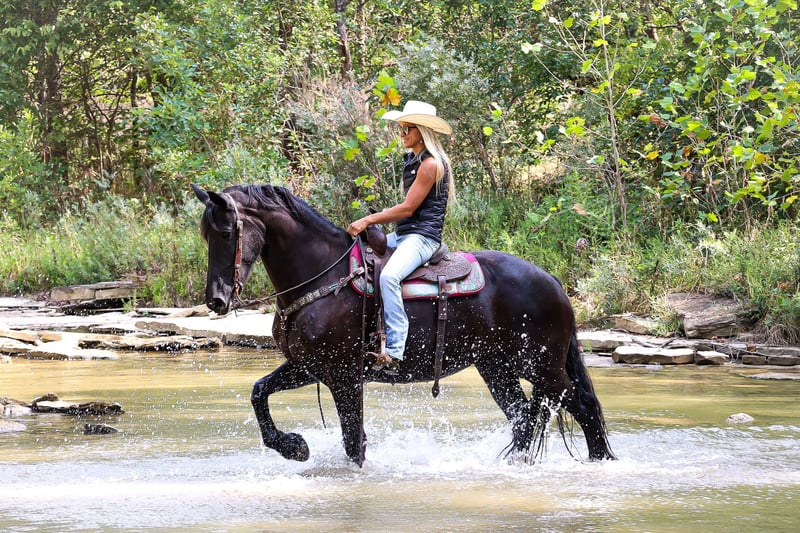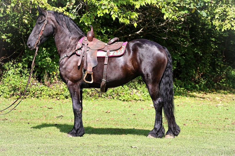 ONLINE AUCTION Place your bids at www.PlatinumEquineAuction.com Starting Bid $3500 Auction ends September 8th, 2024 Need a new saddle? Check out White Rock Saddles on our website or Facebook! This is “ALEXIS LA KAYMON”, a registered black FRIESIAN SPORT HORSE MARE that is broke to ride and drive. She is 16 hands tall and 7 years old. She is a very sensible, experienced, and well trained mare that has been used on the farm. She has also been driven on the main roads and is traffic safe. She is not spooky of side by sides, motorcycles, etc. She is a brave mare that will go anywhere you point her. She rides out alone with confidence. She walks out nicely, has a fancy jog, and a floating canter. She stops easily, backs up, stands to harness, hitch, tack, mount, and groom. She is a fancy Friesian Sport Horse with size, ability, brains, and the training to make her new owners proud. She lopes off with no hump and no buck. For more pics call H&R Horses Erin 304-238-4155 Located in Flemingsburg, KY. ONLINE AUCTION Place your bids at www.PlatinumEquineAuction.com Starting Bid $3500 Auction ends September 8th, 2024 Need a new saddle? Check out White Rock Saddles on our website or Facebook!