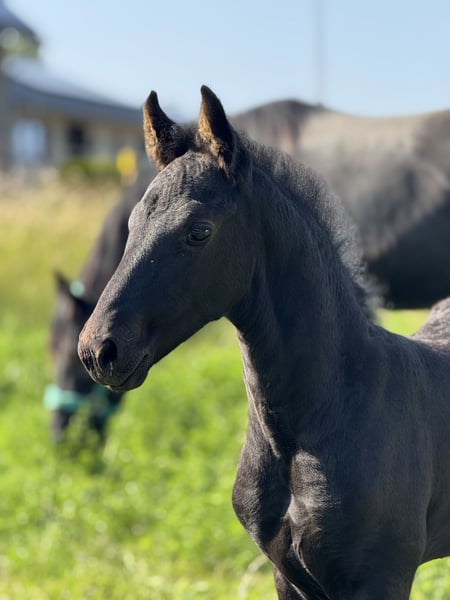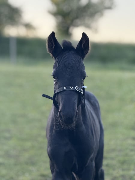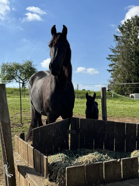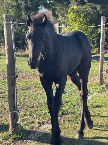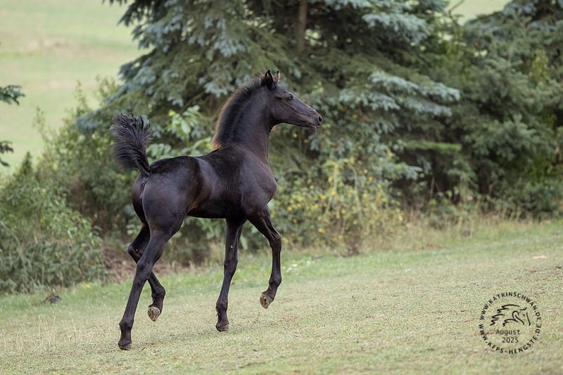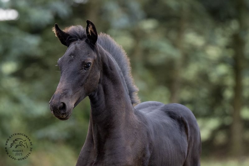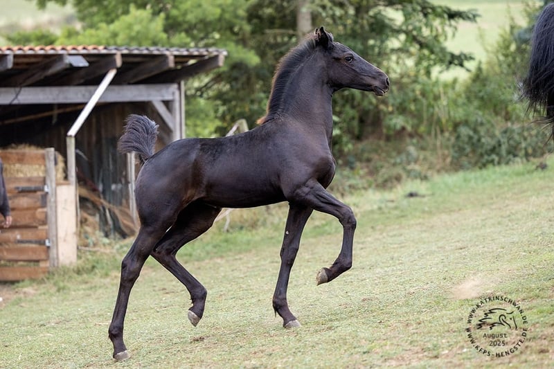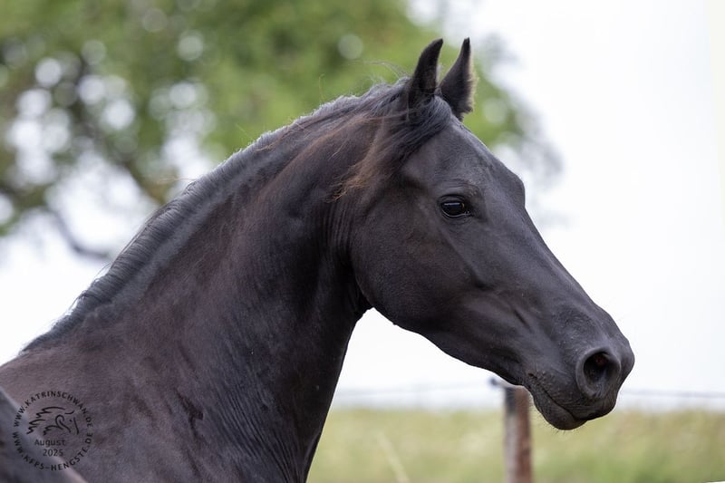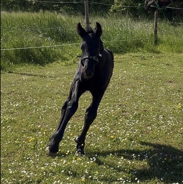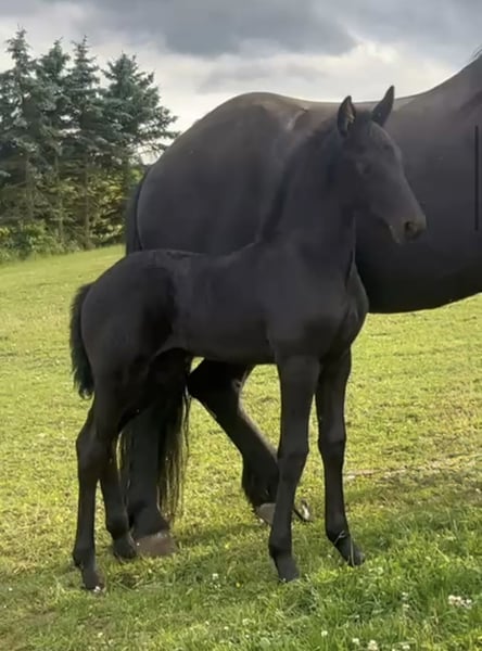 Femke fan E.M.B. Wolter 513 x Waander 512 geboren am 06.05.2025 Dieses bezaubernde, bildschöne, ausdrucksstarke und luxuriöse Stutfohlen sucht sein 5 ⭐️ zu Hause bei Menschen die Femke zu schätzen wissen und entsprechend bereit sind zu fördern! Sie ist freundlich, neugierig, unerschrocken und sehr menschenbezogen. Femke ist hat viel Rassetyp, einen edlen Kopf, ist korrekt gebaut, hat lange, trockene qualitätsvolle Beine sowie eine hervorragende Oberlinie. Der Schritt ist raumgreifend und der Trab zeigt einen guten Hinterhandgebrauch. Im Umgang ist sie, wie ihre Mutter, ein absoluter Schatz. Für die Kenner der Friesenszene: Wolter 513 Sport x Stb. 3. Prämie von Waander 512 x 1. Prämie Ster Sport von Alwin 469 Sport Preferent x 1. Prämie Ster Sport von Fabe 348 Sport Preferent x 1. Prämie Ster Sport Preferent Prestatie von Leffert 306 Sport Preferent Verwandschaft 16.96 Sie stammt aus einer zuchtsicheren Linie, die rassetypische, sportliche und korrekte Friesen hervor bringt. Dadurch ist sie sehr interessant für die Zucht. Aufgrund der sportlichen Erfolge ihrer Zuchtlinie ist zu erwarten das auch Femke im Sport brilliert. Besuch u. kennenlernen jederzeit möglich und auch erwünscht. PS: auf den letzten Bildern ist die Mutter zu sehen