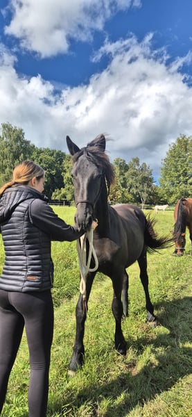 Zum Verkauf steht unser wunderschöner Friesenhengst, geboren im Jahr 2024. . Er wurde letztes Jahr auf der Zuchtschau in Alsfeld als bestes Hengstfohlen mit der zweiten Prämie ausgezeichnet. Ari geht gerne– auch alleine spazieren, ist sehr brav und klar im Kopf und es macht Spaß , ihn beim Großwerden zu begleiten. Aktuell steht er mit seinen Kumpels noch auf der Weide und genießt die Koppelsaison. Er läßt sich mühelos von seiner Gruppe trennen und ist voller Vertrauen. Durch seine besondere Art wird er ein zuverlässiger Begleiter. Gerne kann man ihn bei uns in Hofheim kennenlernen und sich ein eigenes Bild von ihm machen. Dank seiner hervorragenden Abstammung und seines wunderbaren Wesens wäre er auch für die Zucht bestens geeignet. Wir geben Aarjen nur in allerbeste Hände ab. Keine reine Boxenhaltung, keine Händleranfragen. Gerne ernstgemeinte Anfragen jederzeit per WhatsApp,