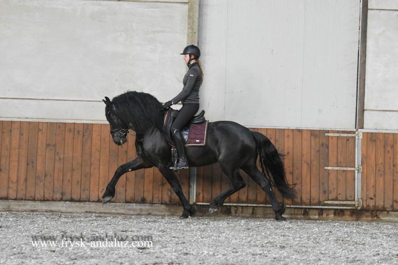 Wat een bijzonder mooie hengst is dit toch! Met zijn kleine hoofdje en grote ogen, lange voorpluk en dikke hals is hij een echt sprookjespaard. Een paard die in de stal opvalt door zijn waanzinnig mooie uiterlijk. Naast dat Tim bloedmooi is heeft hij ook nog eens een fijn karakter en kan hij erg goed bewegen. Je zou bijna denken, dit klinkt te mooi om waar te zijn? Maar niets is minder waar, Tim is echt een heerlijk paard en is momenteel een van onze favorieten! Tim is netjes aangereden onder het zadel en doet elke keer zijn uiterste best. Hij zit comfortabel, staat goed aan de hulpen, heeft een heerlijk zacht mondje en vind het echt leuk om te werken. Hij is voorwaarts maar daarnaast ook gewoon nuchter en braaf. Eigenlijk is het voor zo’n jong paard echt opstappen en wegrijden! In de omgang is Tim een erg vriendelijke, lief en zacht paard die ook wat leuke speelse kanten heeft. We zien hem zeker als sportpaard gaan shinen maar daarnaast zien we hem zeker als een vriendje voor het leven! Röntgenologisch is Tim in orde bevonden. Tim is een vol papier hengst uit de combinatie van sport paarden vererver bij uitstek Teun 505 Sport AAA x Ielke 382 Sport. Zijn moederlijn is vol papier: Ster / Ster / Model+Pref – moeder van Norbert 444 Sport+Pref / Ster+Preferent etc. https://www.frysk-andaluz.com/nl/paard/tim/