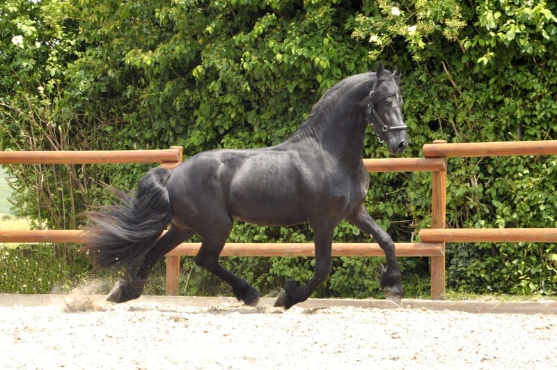 Bardzo miły holenderski Fryz, o średnim typie, z dużą ilością włosów! Ma poprawną budowę, jest ładnie kompaktowo zbudowany i posiada bardzo dobre ruchy. Już podczas pierwszych jazd pod siodłem okazał się bardzo spokojny – i tak pozostało. To poprawny fryz z doskonałym charakterem, odpowiedni także dla początkujących lub słabszych jeźdźców. Podczas pracy wykazuje się dużą chęcią do nauki i przyjemnym zaangażowaniem. Prosimy o zapytania wyłącznie telefonicznie.