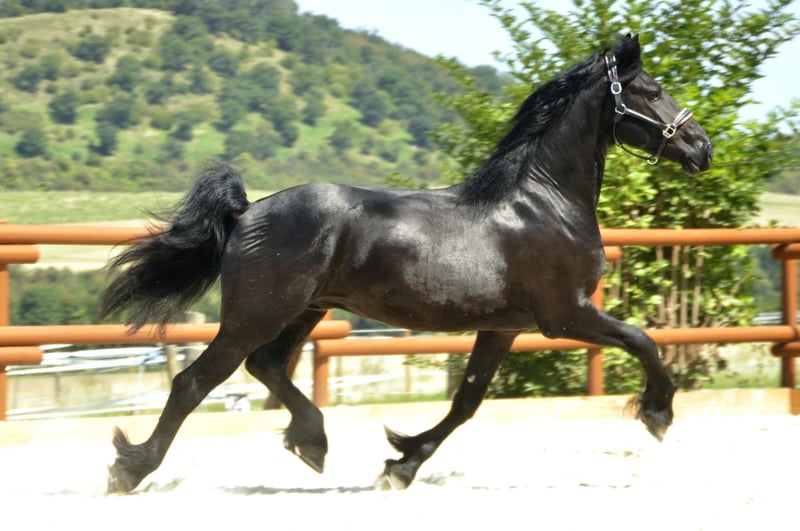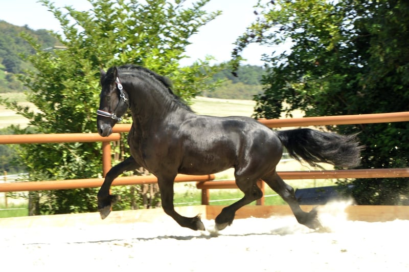 Un Frisón muy hermoso y de tipo distinguido de los Países Bajos, con una buena conformación y movimientos excelentes. Está montado y conducido de acuerdo a su edad, siempre mostrando un comportamiento correcto y una actitud agradable y diligente. Un Frisón que se puede imaginar en muchas disciplinas. Además, tiene un carácter muy amable. Por favor, las consultas solo por teléfono.
