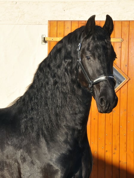 Un cavallo Frisone molto dolce, di tipo medio, con molta criniera! Ha un aspetto corretto, è ben compatto e possiede ottimi movimenti. Un Frisone corretto, con un carattere fantastico. Grazie al suo carattere, è adatto anche a principianti o a cavalieri meno esperti. Durante il lavoro si dimostra molto apprendente e ha un'attenzione piacevole. Per le richieste, si prega di contattare esclusivamente telefonicamente.