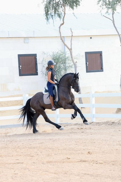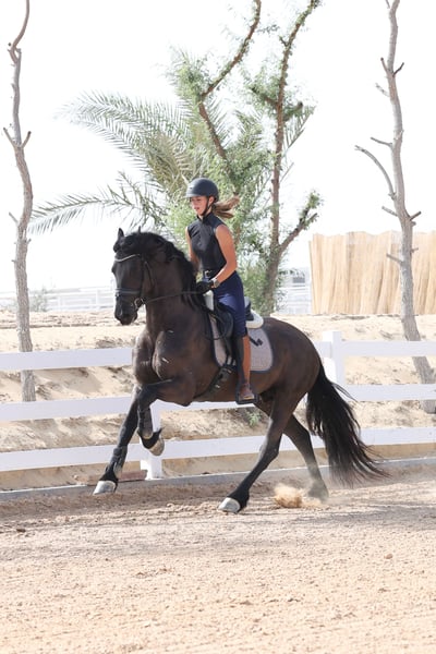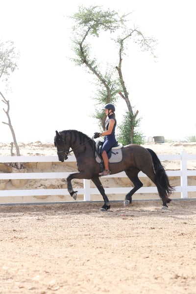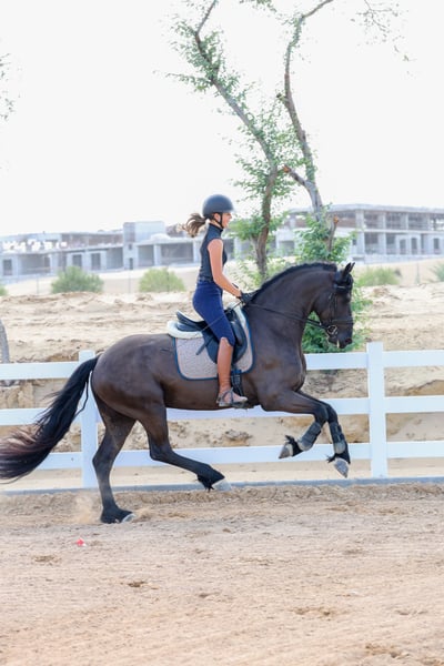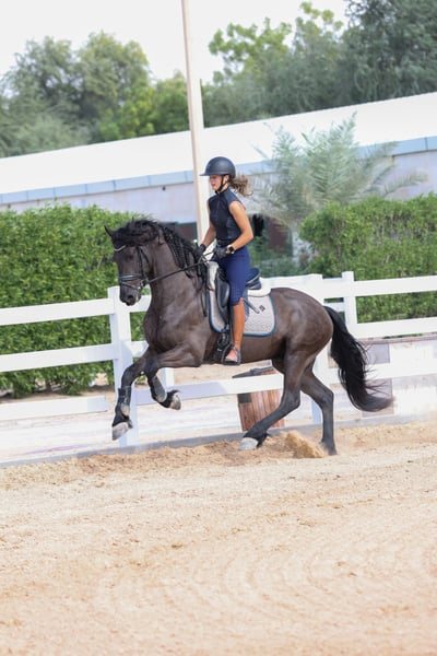 Teade Joh is an outstanding young Friesian stallion from the renowned Jehannes 484 line, and he is exactly the kind of horse that makes true Friesian lovers stop and look twice. He combines the classic Friesian presence with a modern, sport-oriented way of going and an exceptionally rideable character. What makes Teade Joh truly special is his temperament. He has a warmblood-like mindset: willing, cooperative, intelligent, and eager to work. He is not sharp or difficult, but instead thinks with his rider and enjoys his training. This makes him suitable not only for experienced riders, but also for riders who want a Friesian that feels familiar and uncomplicated under saddle. Under saddle, Teade Joh stands out with his expression and movement. He has a powerful yet supple trot, good use of the hind leg, and a natural ability to carry himself. His movements are expressive without being tense, showing balance, elasticity, and natural rhythm. He gives the feeling of a horse that wants to grow with his rider and develop further in the sport. Pedigree Jehannes 484 x Jisse His sire Jehannes 484 is known for producing Friesians with excellent rideability, strong hind legs, and sport aptitude, and Teade Joh clearly reflects these qualities. This pedigree is highly regarded for producing horses that are suitable for higher-level work while maintaining a fantastic character. Key Highlights: - Young Friesian stallion - Exceptional character with warmblood-type rideability - Expressive, elastic movements - Powerful trot with good hind-leg engagement - Willing, intelligent, and eager to work - Not sharp, thinks with the rider - Excellent sport potential - Strong and respected pedigree Teade Joh is not just a beautiful Friesian — he is a stallion with the brain, body, and movement to be developed seriously for sport or to become a top-quality riding horse for someone who wants more than just looks. 📍 Available now 🚨 Serious enquiries only A rare opportunity to acquire a Friesian stallion with true sport qualities and an exceptional mind.