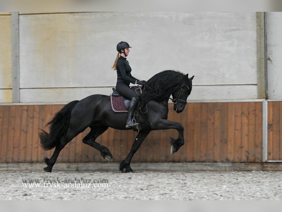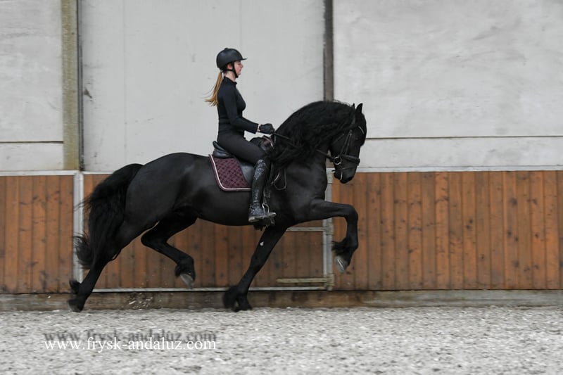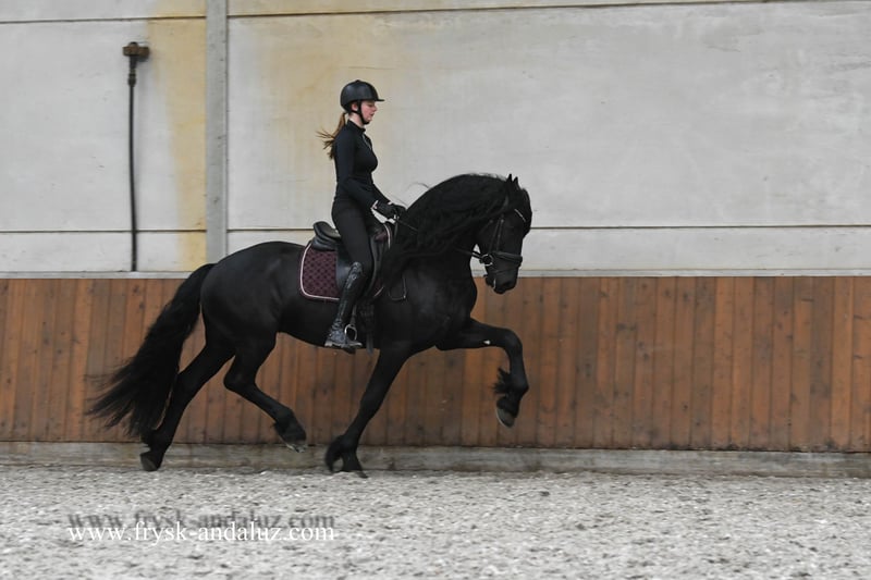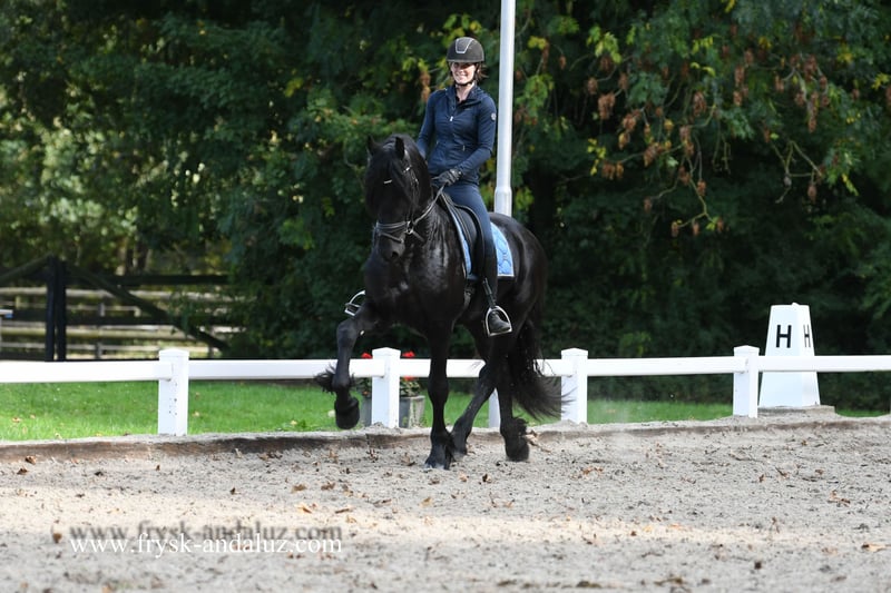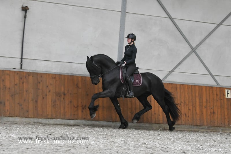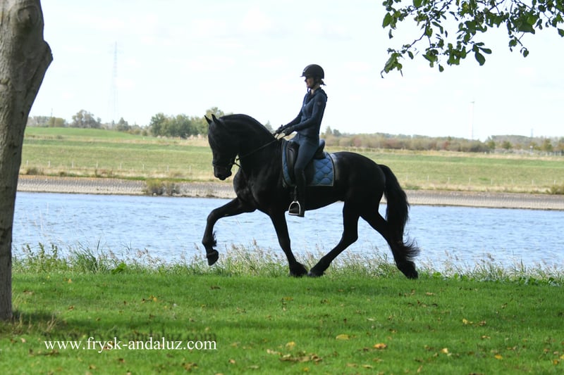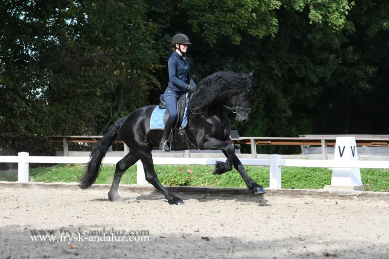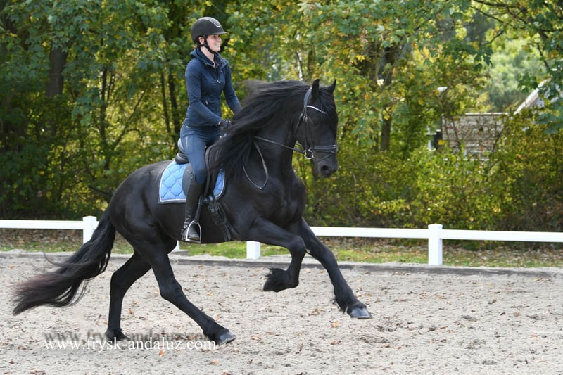 Toy-Boy Een sprookjespaard zeggen we wel eens gekscherend als we een paard zien die zo uit een film kan komen. En dit kunnen we zeker zeggen over Toy-Boy. Een zeer grote en grootramige hengst met veel statuur en enorm veel behang. Hierdoor is hij meer dan een eye-catcher. Toy-Boy is bij ons geboren uit onze Kroon+Sport merrie Victoria van Zomerstaete en ook bij ons opgegroeid. Het is een paard die goed kan bewegen en ook over een geweldig karakter beschikt. Toy-Boy is super vriendelijk, erg aanhankelijk en een echte knuffelbeer. Toy-Boy is goed aangereden onder het zadel en ook al mee geweest op vreemd terrein. Het is bij deze hengst opstappen en wegrijden. Toy-Boy staat goed aan de hulpen, heeft een zachte mond en wilt graag werken. Hij is makkelijk na te rijden en geeft een vertrouwd gevoel. Toy-Boy is een hengst met enorm veel expressie en we zouden het onwijs leuk vinden als hij in de wedstrijden uitgebracht gaat worden. Maar door zijn nuchtere karakter weten we zeker dat Toy-Boy ook blij gaat worden van een heerlijke buitenrit op zijn tijd. Bent u op zoek naar een grote en aparte verschijning? Een paard met een top karakter en geschikt voor de sport? Dan is Toy-Boy wellicht het juiste paard voor u! We sometimes jokingly refer to a horse as a fairy-tale horse when we see one that looks like it could have come straight out of a movie. And we can certainly say that about Toy-Boy. He is a very large, broad-framed stallion with great stature and enormous mane and tail. This makes him more than just an eye-catcher. Toy-Boy was born here from our Kroon+Sport mare Victoria van Zomerstaete and also grew up here. He is a horse that moves well and also has a great character. Toy-Boy is super friendly, very affectionate, and a real cuddly bear. Toy-Boy is well broken in under saddle and has also been out on unfamiliar terrain. With this stallion, it's just a matter of getting on and riding away. Toy-Boy responds well to aids, has a soft mouth, and loves to work. He is easy to ride and gives a feeling of confidence. Toy-Boy is a stallion with tremendous expression, and we would love to see him compete in competitions. But because of his down-to-earth character, we are sure that Toy-Boy will also enjoy a lovely outdoor ride from time to time. Are you looking for a large and special appearance? A horse with a great character and suitable for sport? Then Toy-Boy might be the right horse for you! https://www.frysk-andaluz.com/horse/toy-boy/