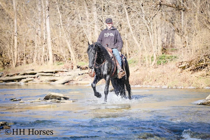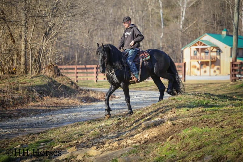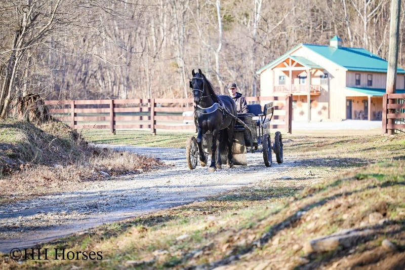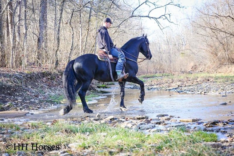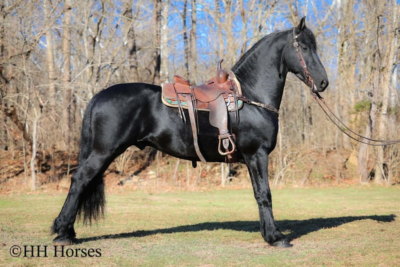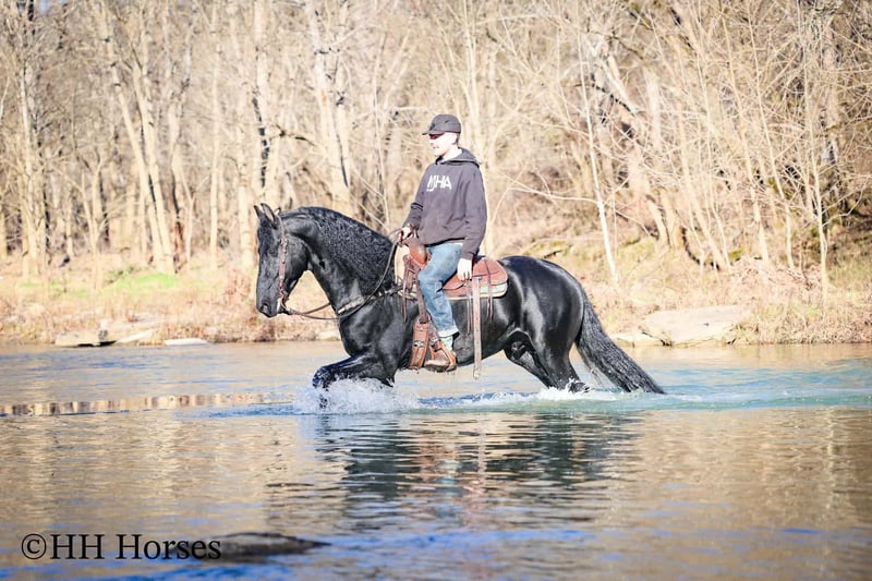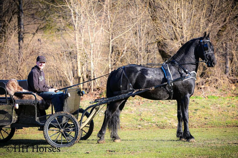 ❤️🔥𝑩𝒆 𝑴𝒊𝒏𝒆 𝐒𝐄𝐋𝐄𝐂𝐓❤️🔥 Happening now thru MONDAY | FEBRUARY 9th - Available EXCLUSIVELY on HorseBid's website! For more details and to register visit: www.Horsebid.com CONSIGNOR CONTACT: HH Horses 304-238-4155 LOCATION: Hillsboro , KY BREED: Friesan REGISTERED: Yes REGISTERED NAME: DOAITSEN'S IMAGE COLOR: Black HEIGHT: 16.2 AGE: 5 GENDER: Stallion This is "DOAITSEN'S IMAGE", a very attractive, handsome, and intelligent REGISTERED PUREBRED FRIESIAN STALLION that is well broke to ride and drive. He is 16.2 hands tall and 5 years old. This stallion has been shown, used in many stallion showcases, won many blue ribbons in the hitch classes, and been shown under saddle successfully as well. He is extremely well mannered for a stallion and has been trail ridden amongst mares and geldings with no fuss. He handles very quietly in the barn even when in very close proximity to other horses. He is a true gentleman with excellent ground manners. He stands tied, loads, bathes, and hauls. He is a proven breeder with a nice foal crop on the ground. He is an own son of "DOAITSEN 420". This nice stallion is very people oriented and he loves attention. He aims to please, will go anywhere you ask him to trail riding, and will lead or follow when riding in a group. He rides out alone with confidence bravely. You can keep him a stud and breed some mares or you can geld him and have a top notch gelding. He is the kind of stallion that makes owning a stallion easy. He is a gorgeous mover, has nice conformation, is smooth to ride, and has lots of action. Here is the chance to raise some spectacular Friesian cross babies and to have a talented, smart, and well mannered stallion. He's a kind horse that is easy to hitch, harness, tack, mount, groom, and ride. The purebred Friesian stallions are hard to find. We Can Help With Delivery Anywhere In The United States. Call or Text Erin at 304-238-4155