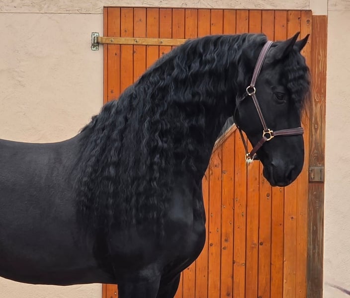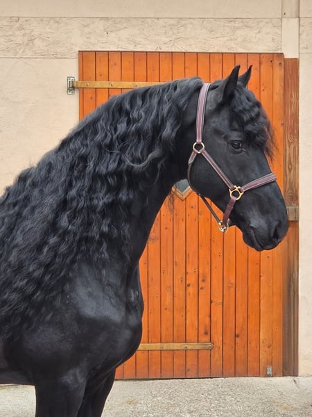 Bardzo miły i wszechstronny fryz z Holandii z imponującą grzywą! Jest poprawnie zbudowany i ma piękne, przestronne ruchy. W pracy w czworoboku zawsze współpracuje dobrze i wykazuje przyjemną chęć do pracy. Ponadto jeździł wcześniej w zaprzegu. Zna teren i ruch uliczny, jest zawsze dobrze ujeżdżalny. To bardzo sympatyczny fryz dla ambitnego jeźdźca lub całej rodziny. Prosimy o kontakt wyłącznie telefoniczny.