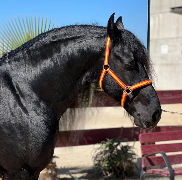 Zum Verkauf steht dieser imposante, 7 jährige Friesenhengst. Er ist top geritten und hat bereits viel Erfahrung auf Shows und Ferias. Er beherrscht spielend leicht die Piaffe, Passage, Pirpuette, Levade und den spanischen Schritt. Auch in der klassischen Dressur ist er bestens geritten und läuft auf M-Niveau. Er ist einfach zu bedienen, nervenstark und kann auch von schwächeren Reitern bedient werden. Ein echte Ausnahmepferd - ideal als Schoolmaster oder zum sofortigen Showeinsatz!